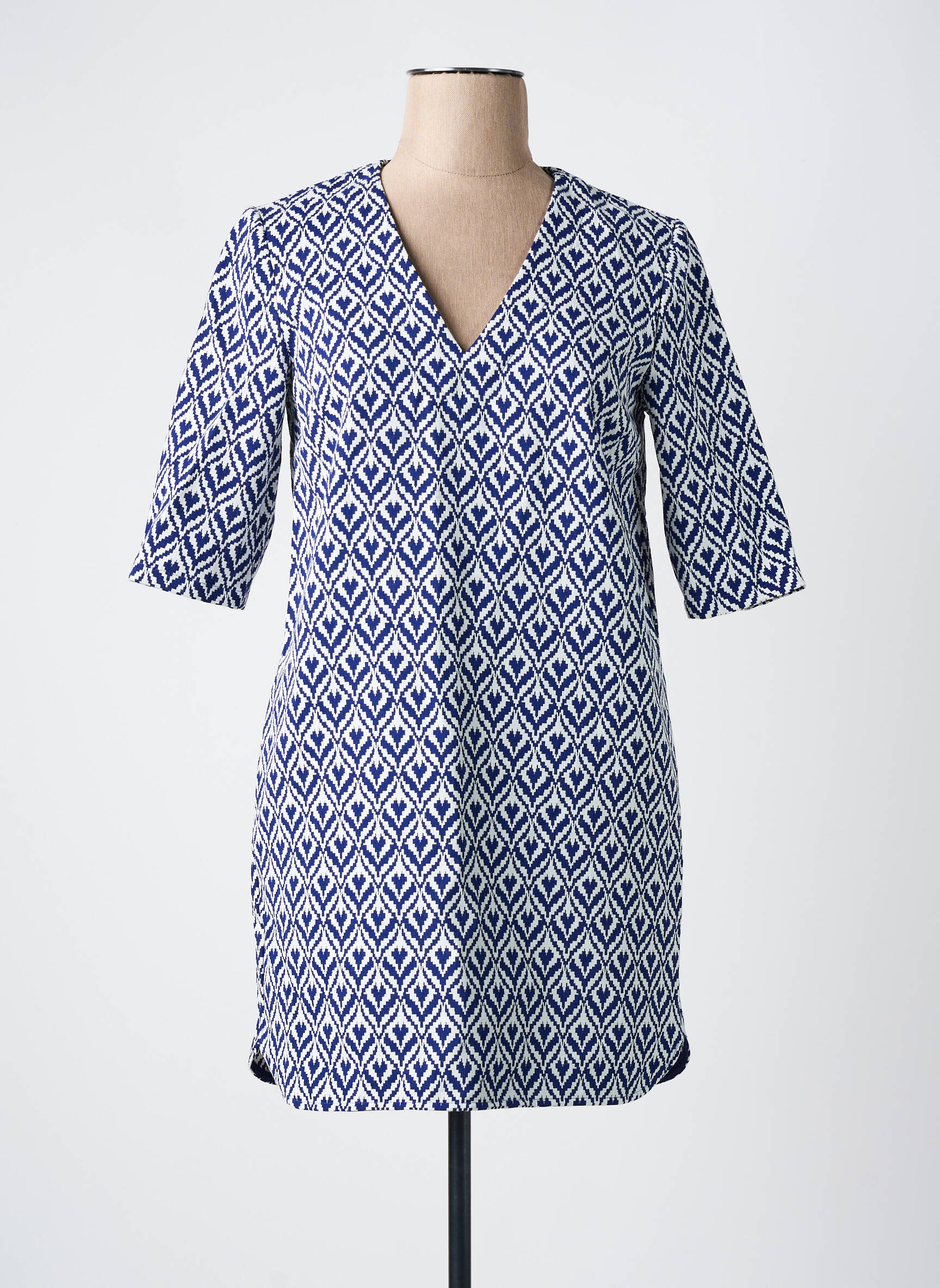 Craquez pour cette robe mi-longue SEE U SOON à petit prix et offrez-vous un look tendance sans vous ruiner, avec sa coupe droite ultra confortable, son joli col en V féminin et son motif graphique bleu et blanc qui apporte une touche moderne et sophistiquée idéale pour toutes les occasions.