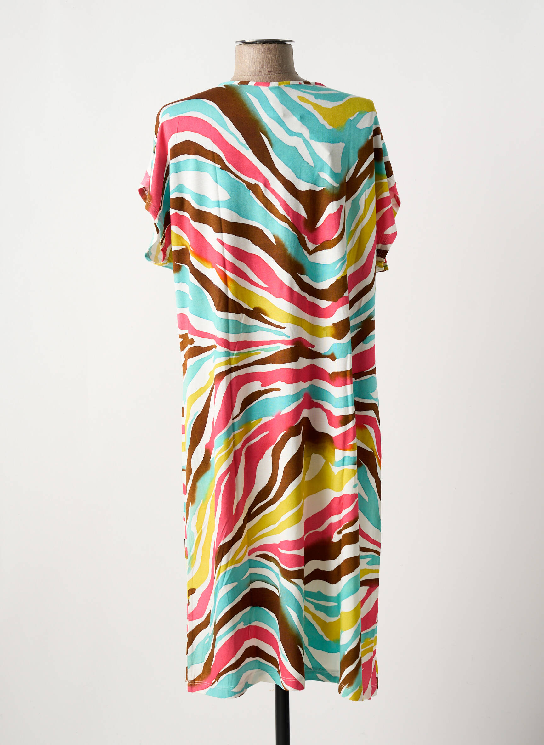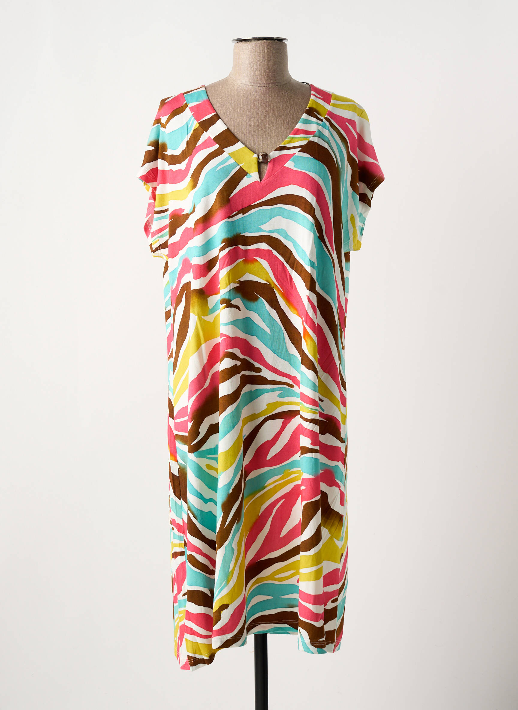 Craquez pour cette robe mi-longue SENORETTA à prix mini, idéale pour ajouter une touche de pep’s à votre dressing sans vous ruiner. Son imprimé coloré aux motifs ondulés mélange des tons vifs de rose, bleu, jaune et marron, apportant fraîcheur et originalité à votre silhouette. Avec sa coupe décontractée et son col en V, elle assure un confort parfait au quotidien tout en restant élégante et tendance, une vraie opportunité pour profiter de la mode à petit prix.