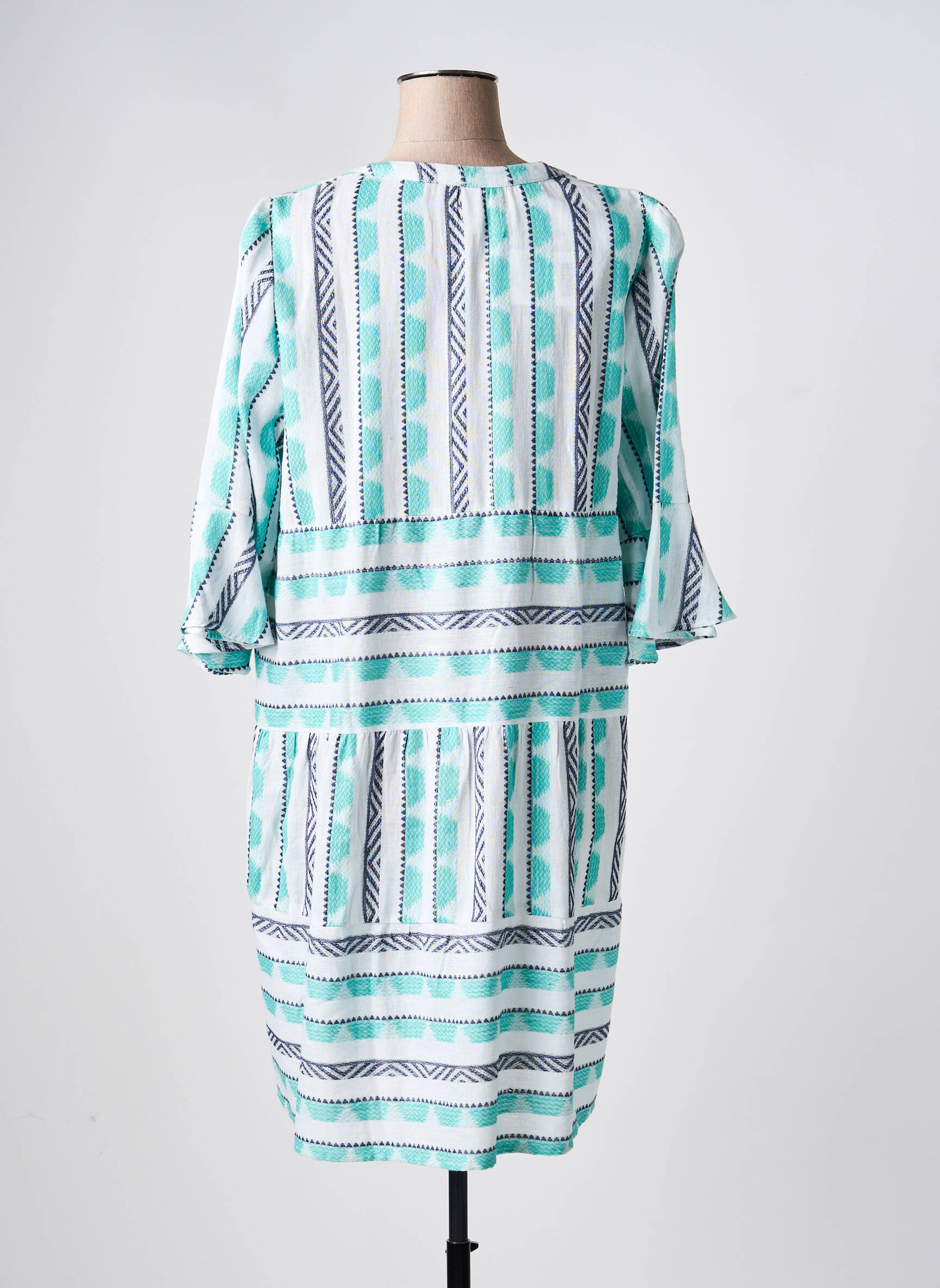 Craquez pour cette robe mi-longue SENORETTA à prix tout doux, idéale pour apporter une touche de fraîcheur à votre garde-robe sans vous ruiner. Sa coupe ample et confortable offre une silhouette décontractée, tandis que ses motifs graphiques dans des tons turquoise, blanc et noir apportent une note estivale et tendance parfaite pour la belle saison. C’est le bon plan à saisir pour s’offrir une pièce chic à petit prix.