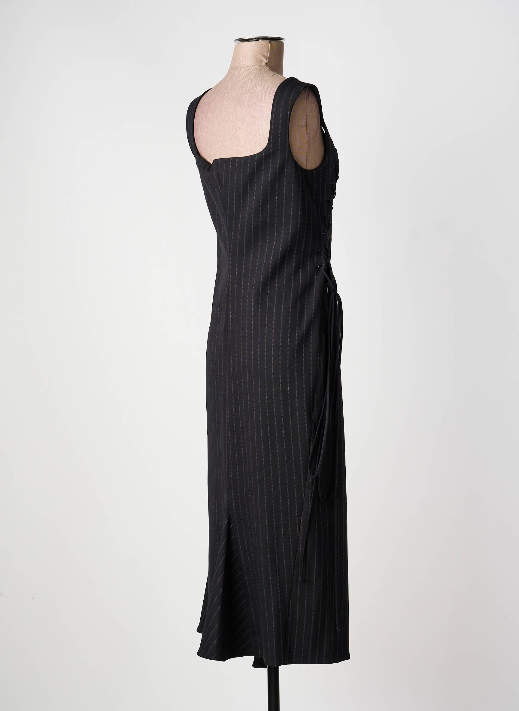Profitez d’une véritable bonne affaire avec cette robe mi-longue SPORTMAX pour femme, parfaite pour celles qui veulent allier élégance et économies. Son motif à fines rayures verticales donne une silhouette allongée et moderne, tandis que la coupe asymétrique et le laçage sur le côté ajoutent une touche de sophistication discrète. Ce modèle sans manches, doté d’un joli décolleté carré, se démarque par son look à la fois minimaliste et tendance, idéal pour des occasions aussi bien habillées que décontractées. Saisissez cette pièce chic à prix réduit pour renouveler votre garde-robe avec style sans vous ruiner.