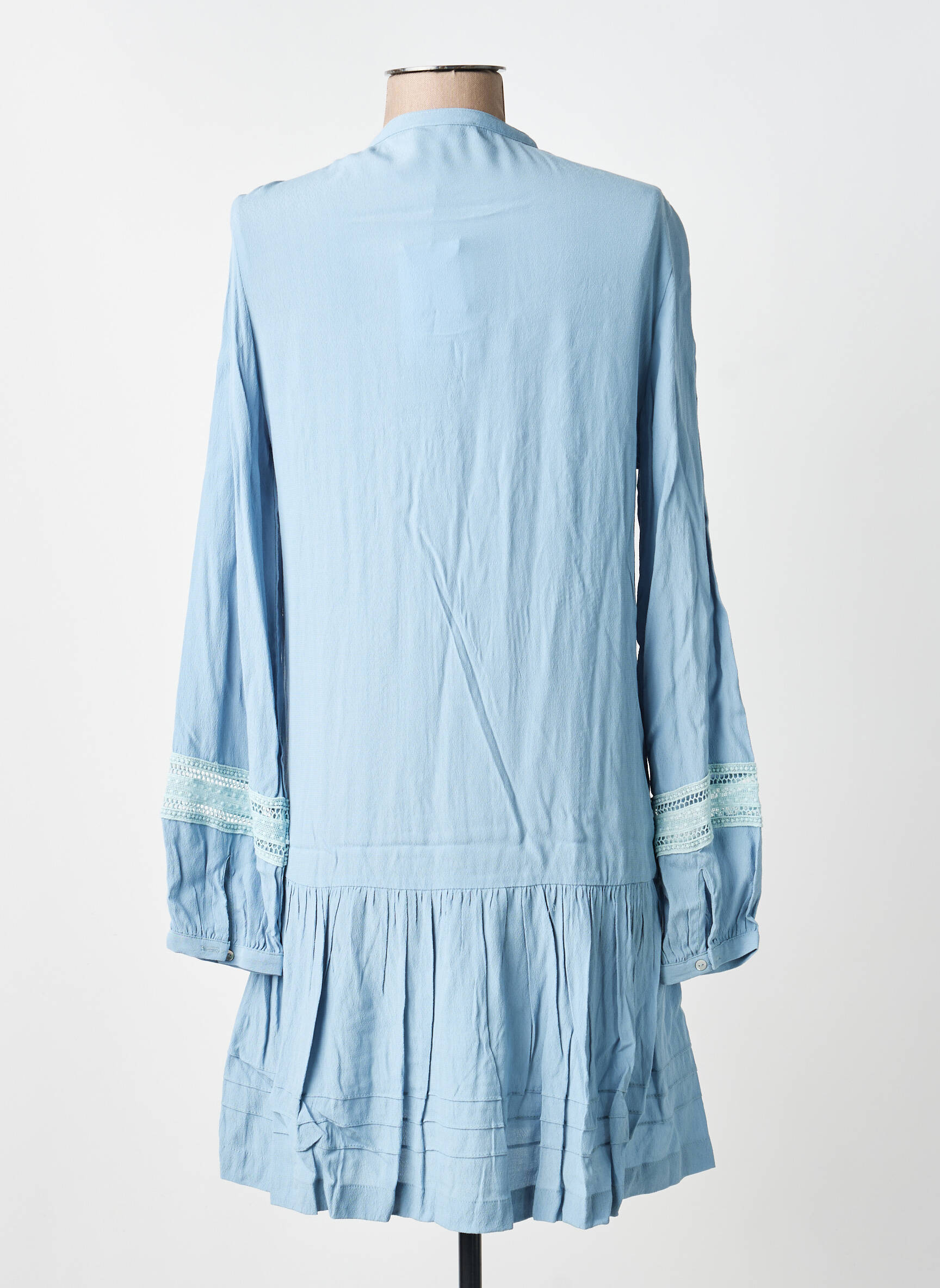 Profitez d'une belle opportunité mode avec cette robe mi-longue SUNCOO pour femme, proposée à un prix tout doux pour faire plaisir à votre dressing sans faire exploser votre budget. Sa coupe fluide et confortable met en valeur une teinte bleu pastel très tendance, rehaussée de délicats détails de plis et d'inserts en dentelle sur le devant et les manches, pour un look aussi féminin que moderne. Idéale à porter aussi bien en journée qu’en soirée, elle vous permet de rester élégante sans vous ruiner.