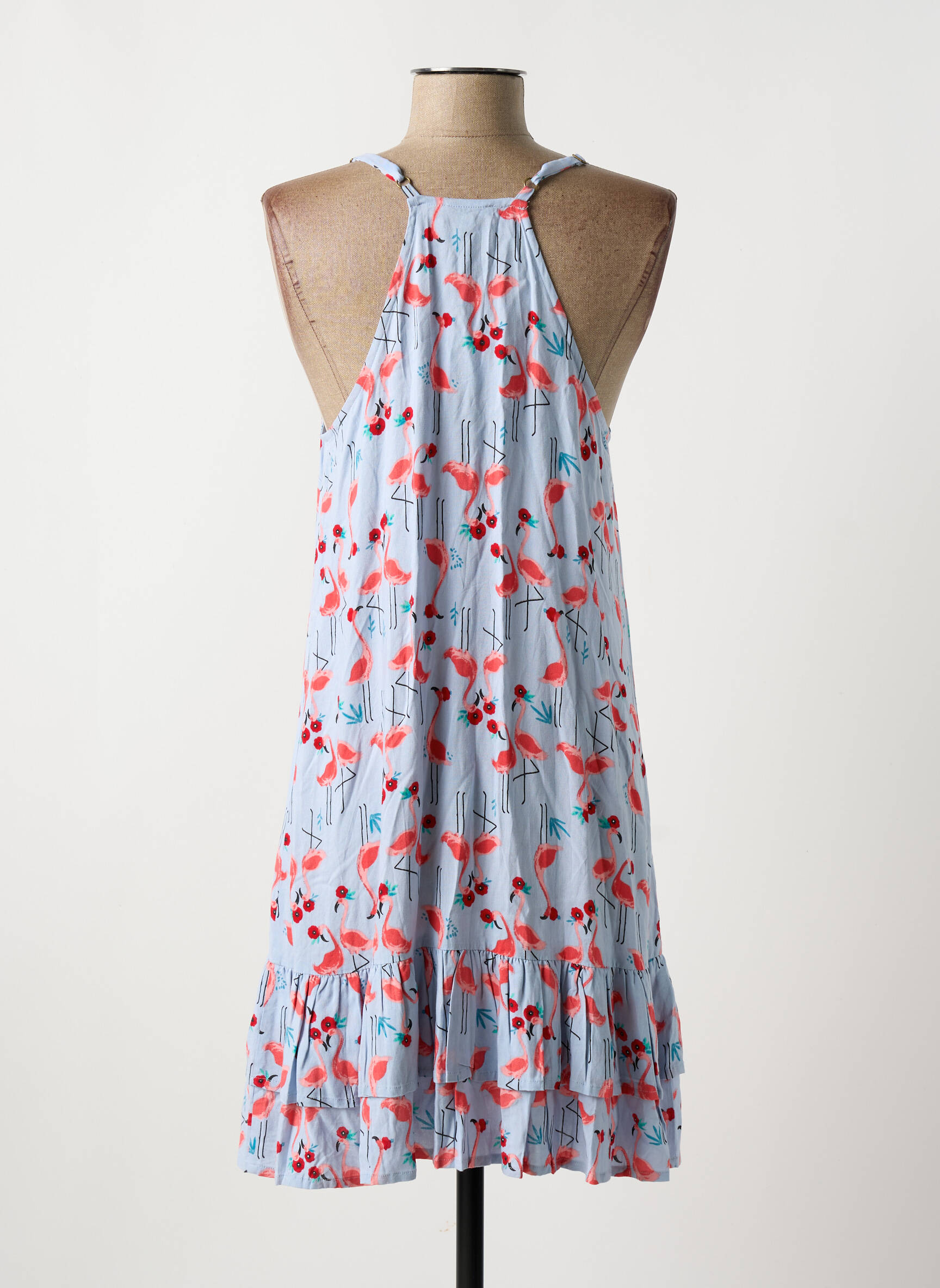 Profitez de l’occasion pour vous offrir cette robe mi-longue Surkana à prix mini, idéale pour les journées ensoleillées. Avec sa coupe fluide, ses fines bretelles et son motif fleuri pétillant sur fond bleu pastel, elle apporte une note fraîche et féminine à votre garde-robe. Les détails volantés à la base ajoutent une touche bohème tendance, parfaite pour un look casual chic sans se ruiner.