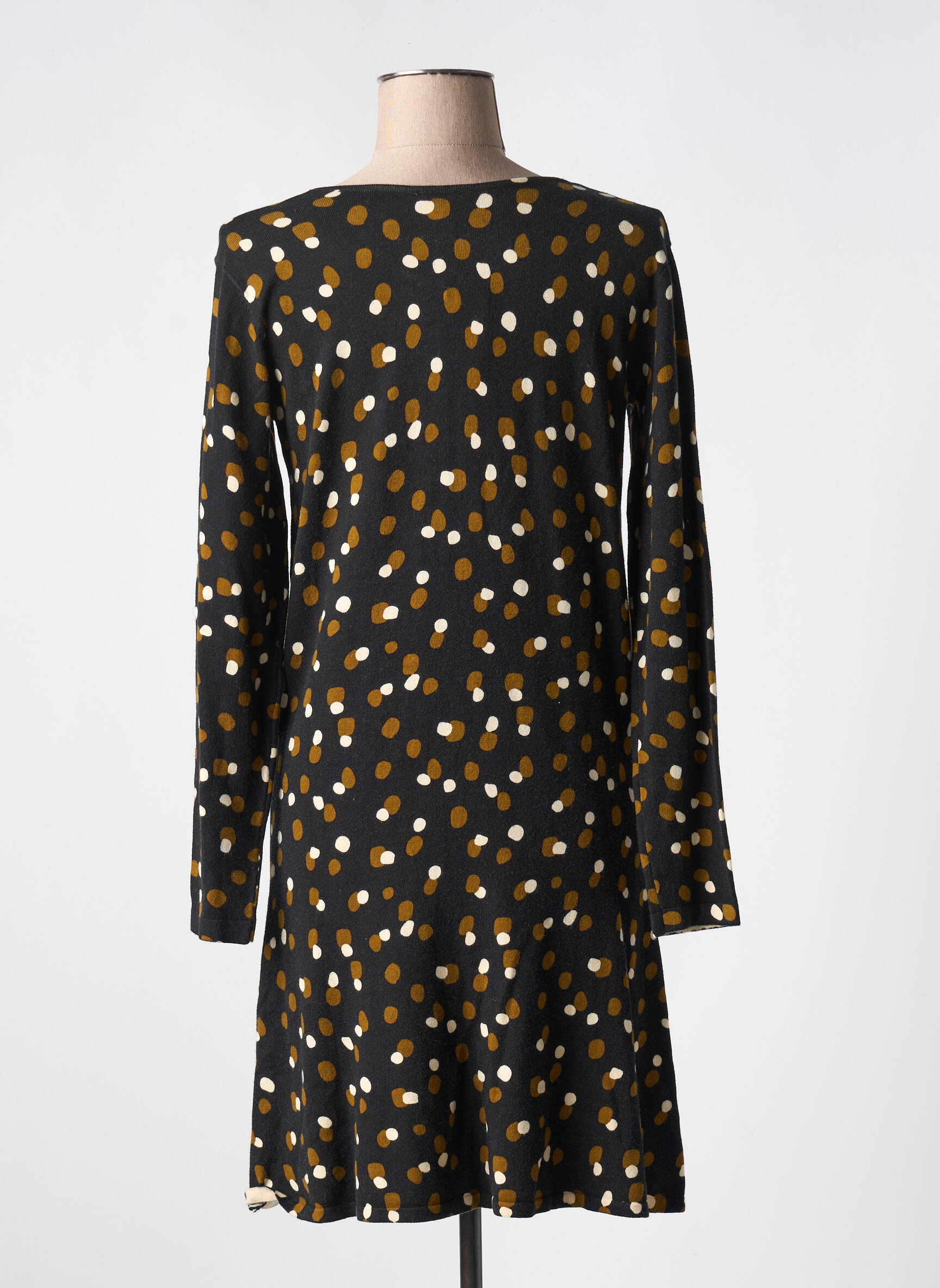 Craquez sans vous ruiner pour cette robe mi-longue Surkana, parfaite pour apporter une touche originale à votre dressing sans exploser votre budget. Son motif à pois dans les tons ocres, blancs et noirs donne une allure moderne et dynamique, tandis que sa coupe droite et ses manches longues assurent un confort au quotidien. Idéale pour profiter d’un look tendance à prix tout doux, c’est le bon plan mode à ne pas laisser passer cette saison.