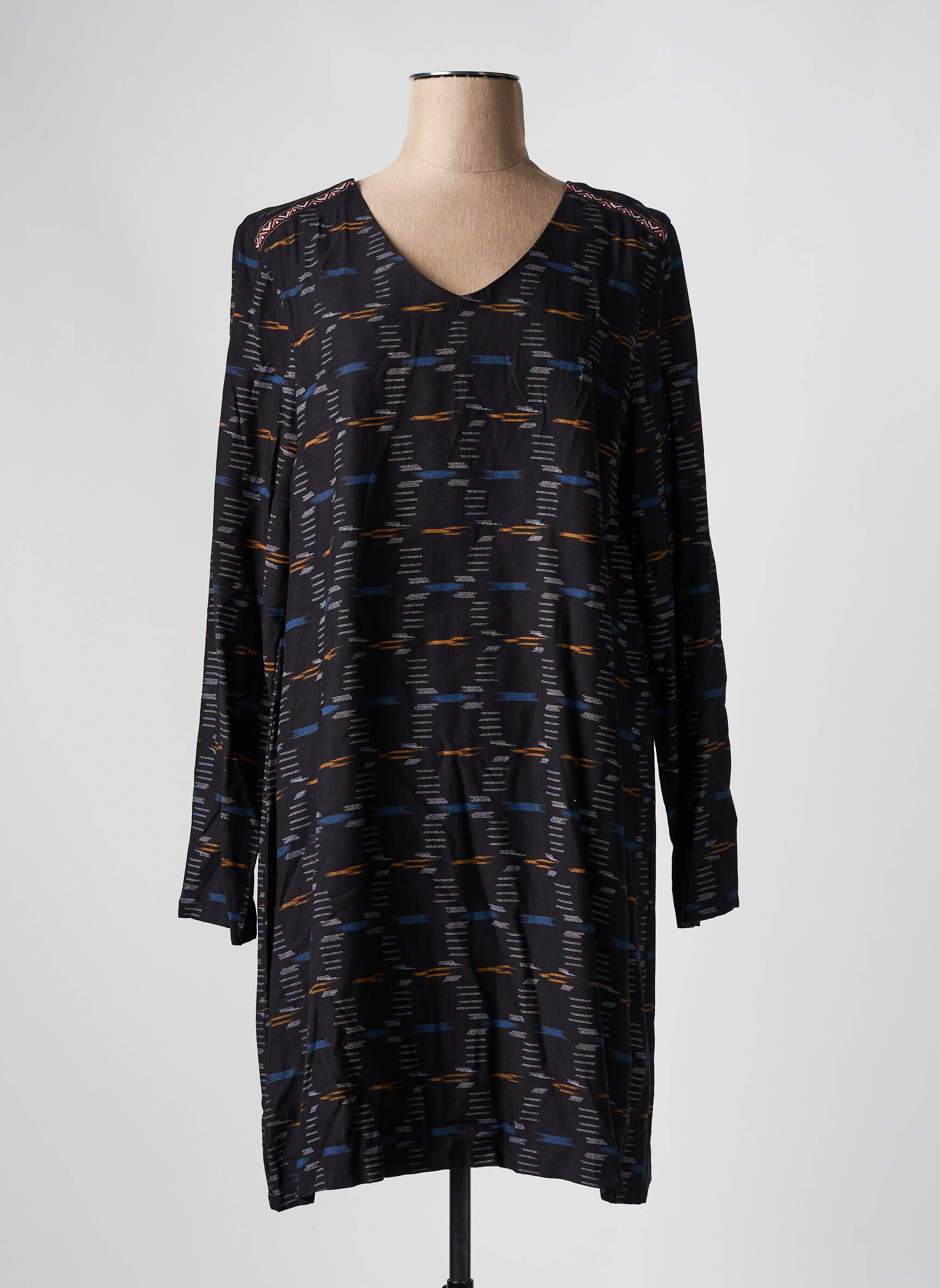 Profitez d’un bon plan mode avec cette robe mi-longue de la marque SURKANA, idéale pour allier style et confort sans vous ruiner. Son imprimé graphique aux nuances sobres apporte une touche d’originalité à votre quotidien, tandis que sa coupe droite et ses manches longues en font une pièce facile à porter toute la saison. Avec son col en V flatteur, elle se glisse aussi bien dans une silhouette décontractée que chic et c’est le choix parfait pour shopper une marque tendance à petit prix.