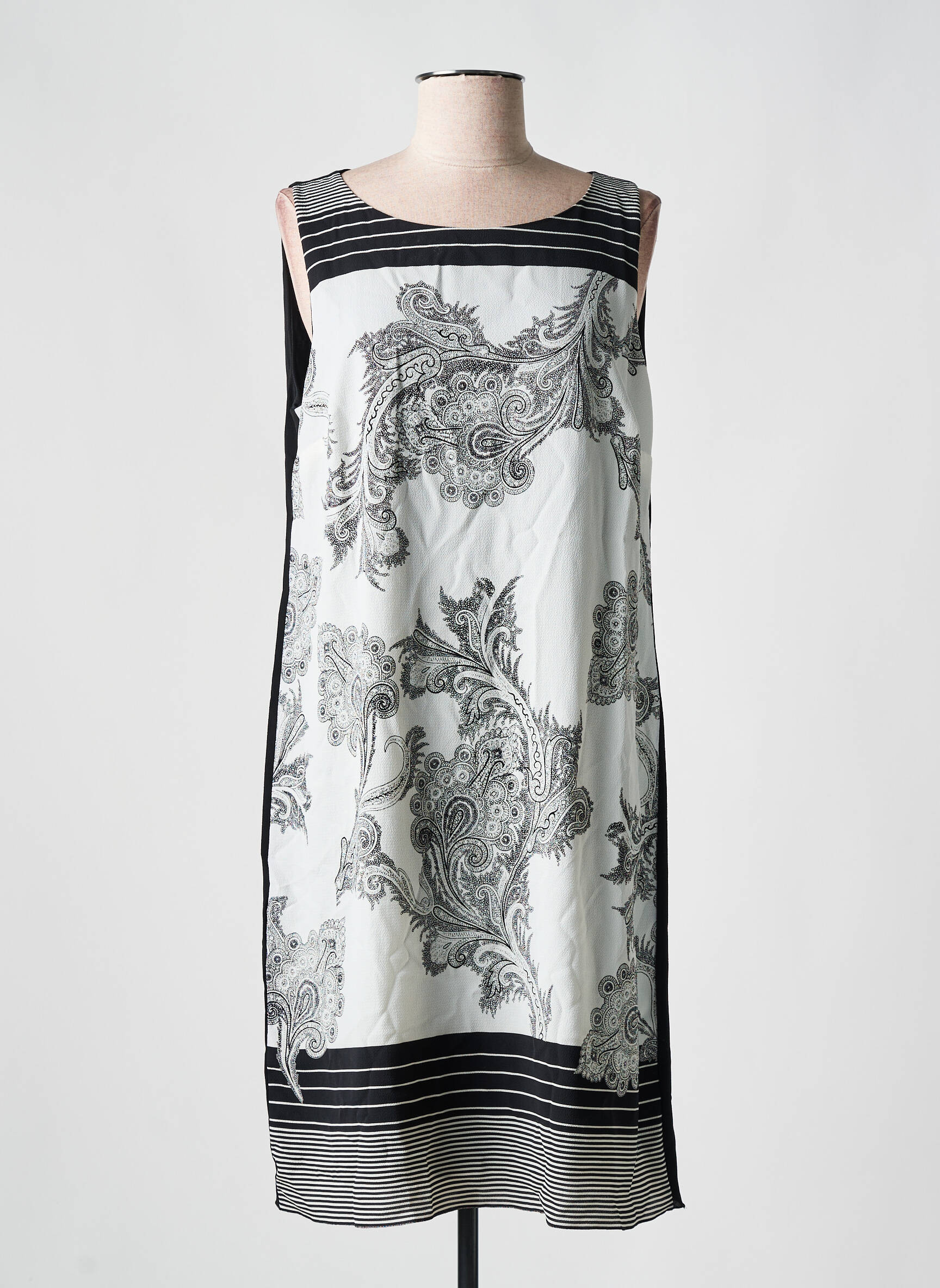 Offrez-vous une robe chic à petit prix avec cette robe mi-longue TELMAIL pour femme, idéale pour un look raffiné sans se ruiner?; son imprimé noir et blanc délicatement travaillé ainsi que sa coupe droite et sans manches en font un incontournable de la garde-robe estivale, parfait pour profiter d’une bonne affaire tout en restant élégante et tendance.