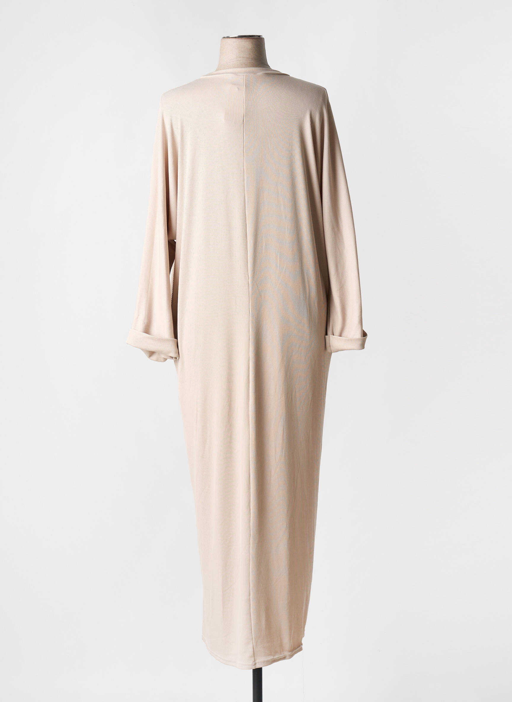 Robe Mi-longue Tendance Unique Beige Manches Longues
