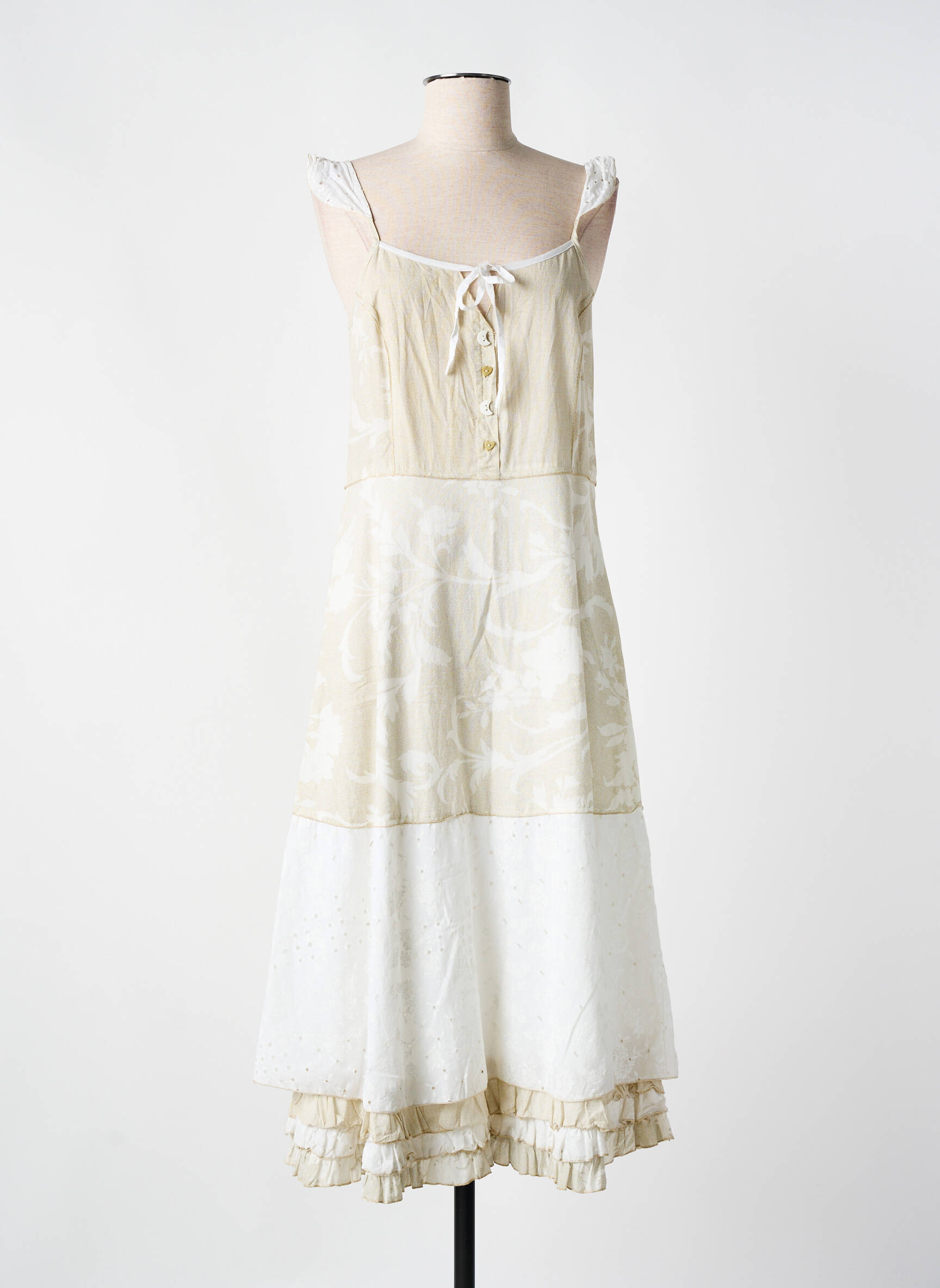 Robe Mi-longue Tilber Beige Fines Bretelles