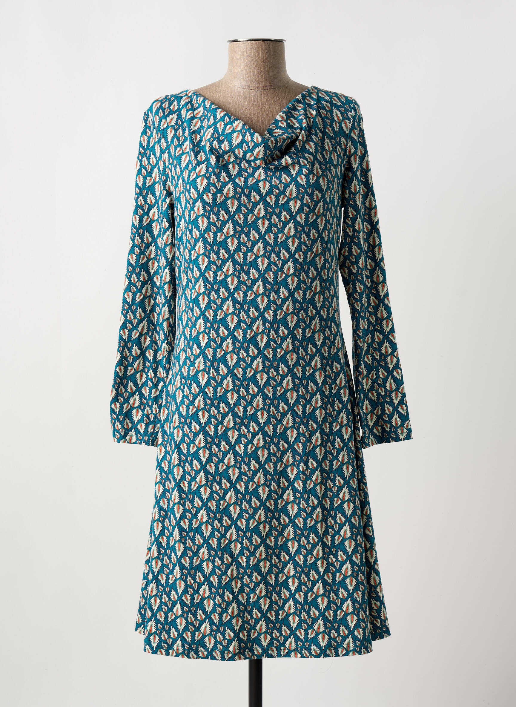 Craquez pour cette robe mi-longue de la marque TRANQUILLO, une véritable aubaine pour donner du style à votre dressing sans vous ruiner. Sa coupe légèrement évasée accompagne avec élégance chaque mouvement, tandis que son imprimé graphique bleu et beige apporte une touche originale et lumineuse à votre silhouette. Le col délicatement drapé ajoute une note féminine, et les manches longues en font une pièce confortable à porter en toute saison. Profitez de ce bon plan pour adopter un look tendance et unique à prix tout doux.