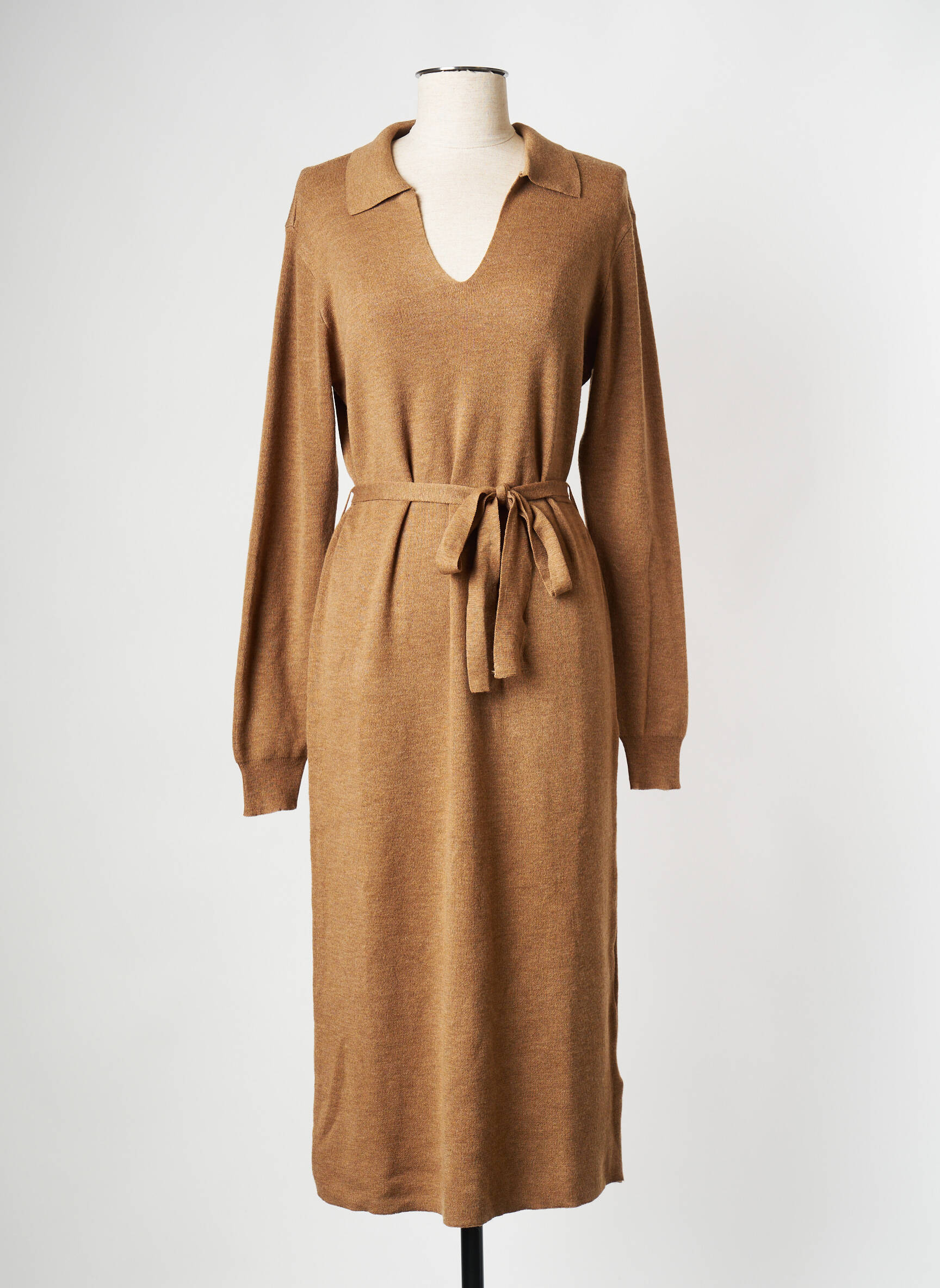 Robe midi col V à revers Toasted Coconut. Composition :94% Polyamide, 6% Laine
