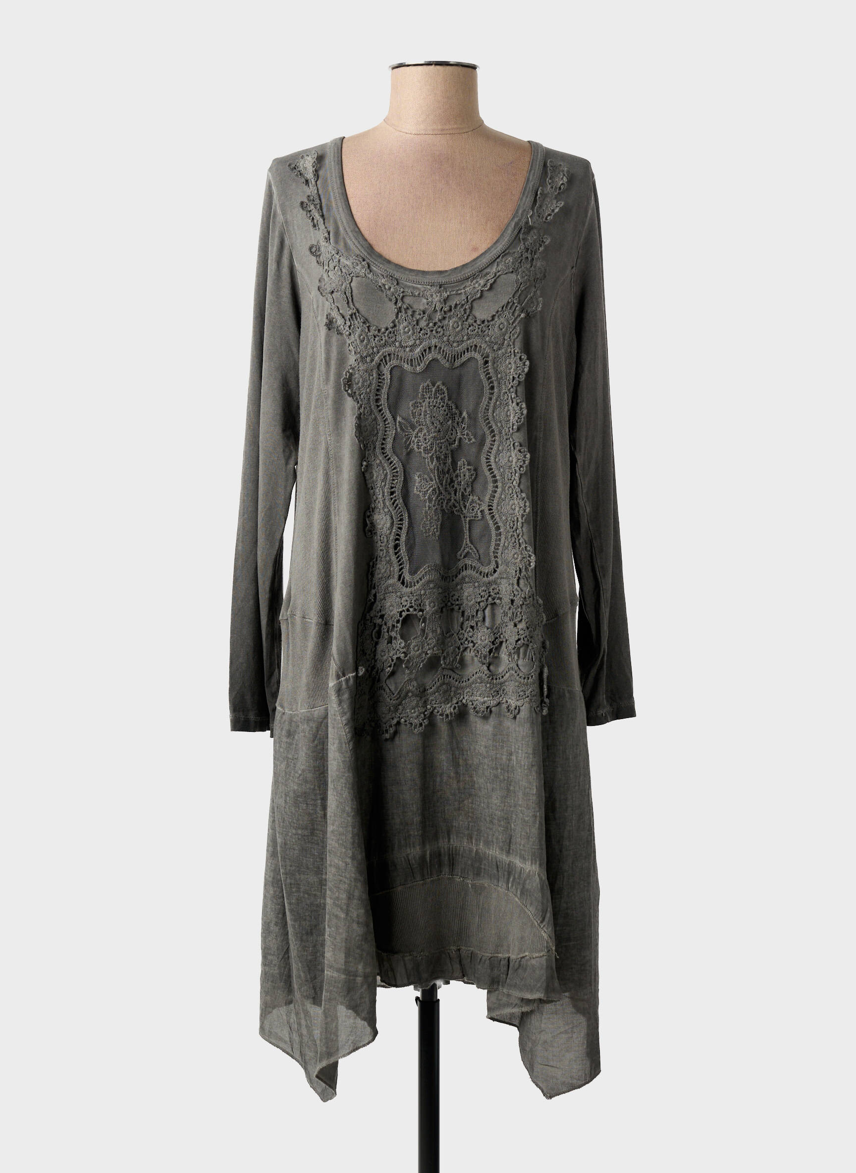 Robe Mi-longue Yoek Gris Manches Longues