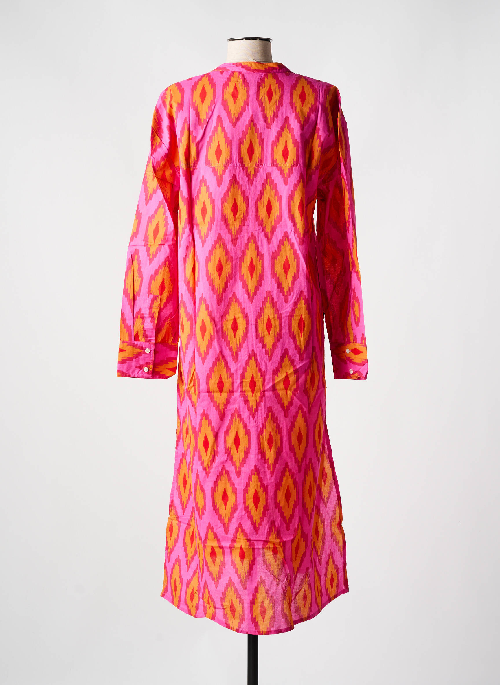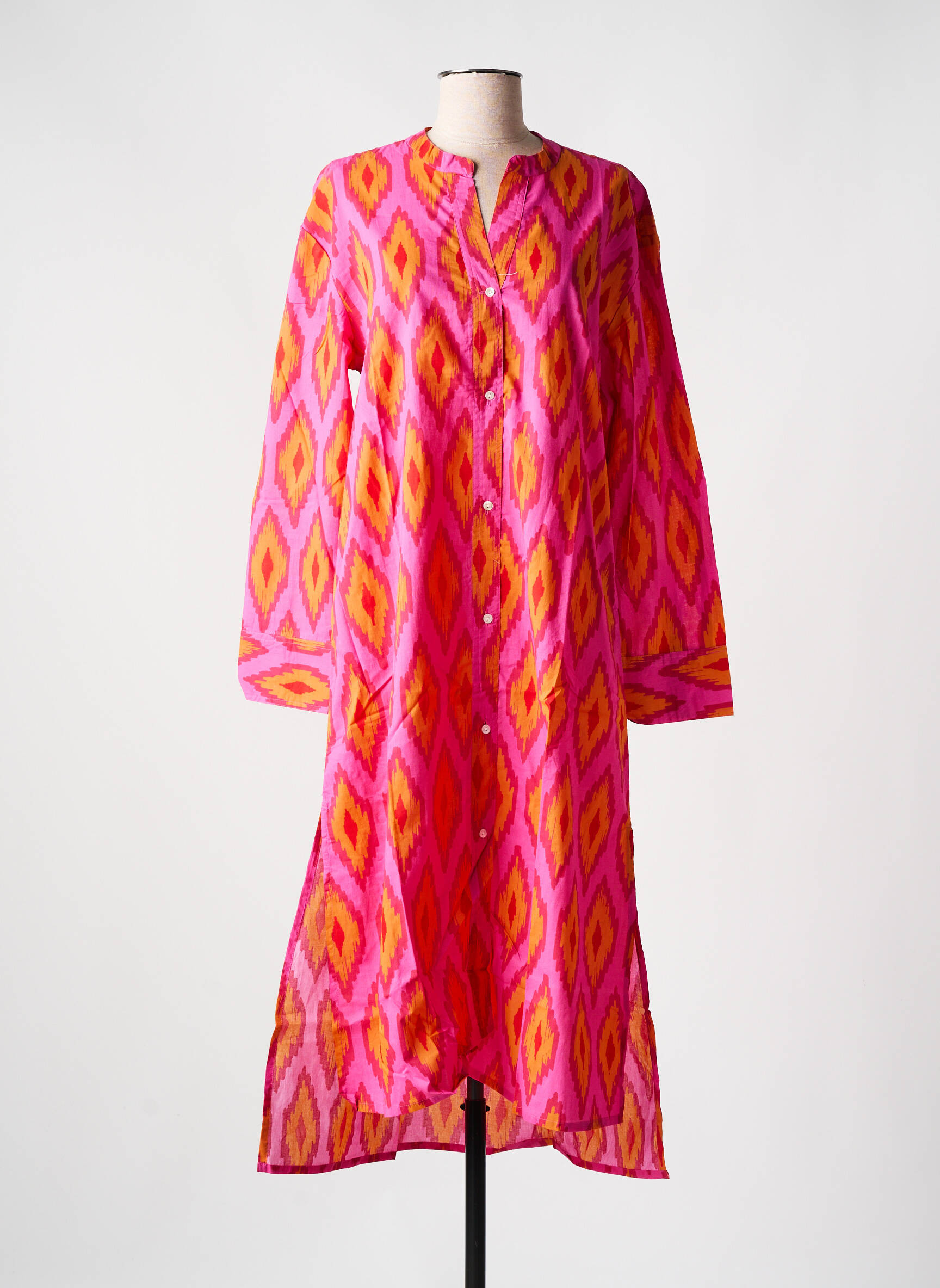 Craquez pour cette robe mi-longue ZEN ETHIC à prix mini, parfaite pour égayer votre dressing sans vous ruiner. Son imprimé vibrant mêle harmonieusement des tons roses, jaunes et orange pour une allure à la fois pétillante et élégante, tandis que sa coupe fluide et son col tunisien apportent une touche bohème idéale pour la belle saison. Profitez de cette pièce unique à petit prix pour vous offrir un look chic, confortable et tendance tout en faisant des économies.