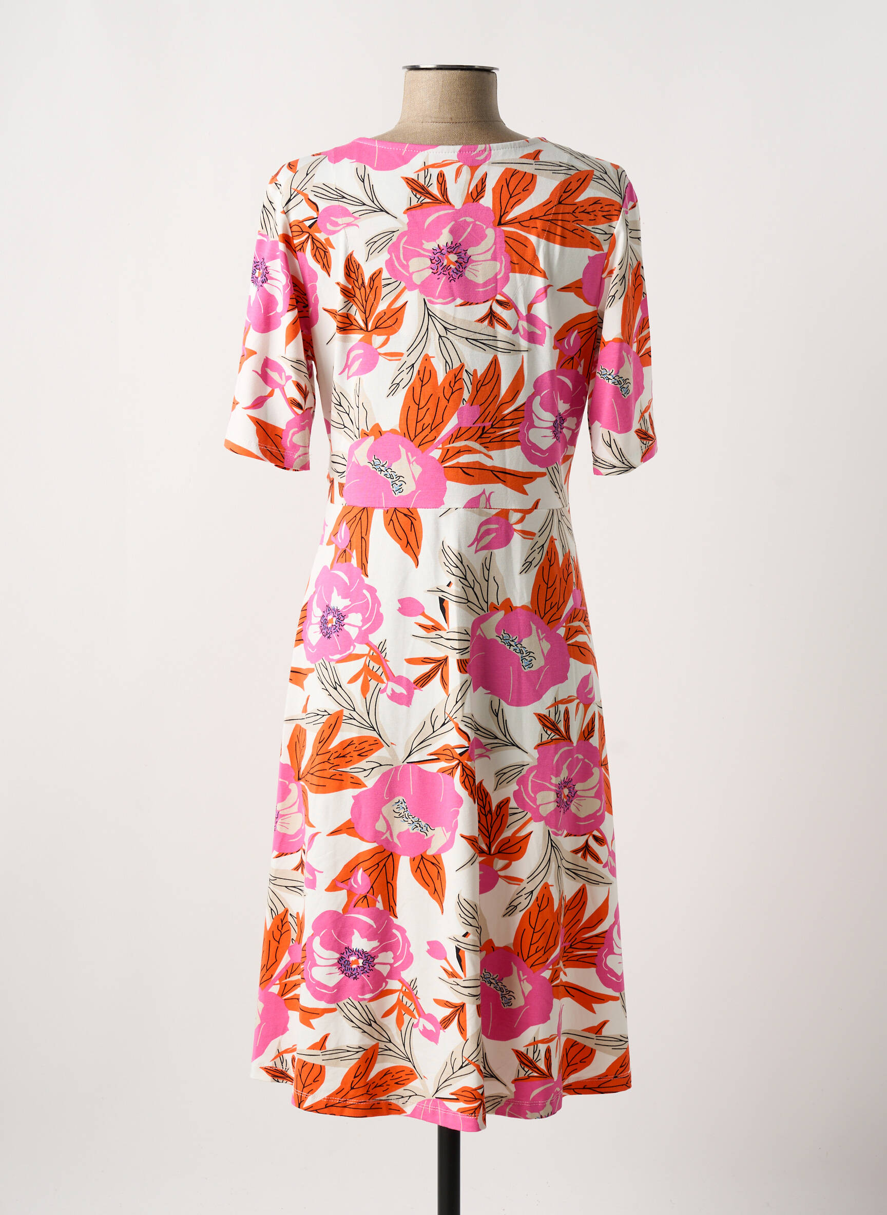 Craquez pour cette robe mi-longue de la marque Zilch, une pièce idéale pour se faire plaisir à petit prix tout en ajoutant une note colorée à votre dressing. Sa coupe cache-cœur flatte la silhouette tandis que son imprimé floral mêlant fuschia, orange et touches de blanc apporte une fraîcheur éclatante parfaite pour la belle saison, le tout à un tarif déstocké à ne pas laisser passer.