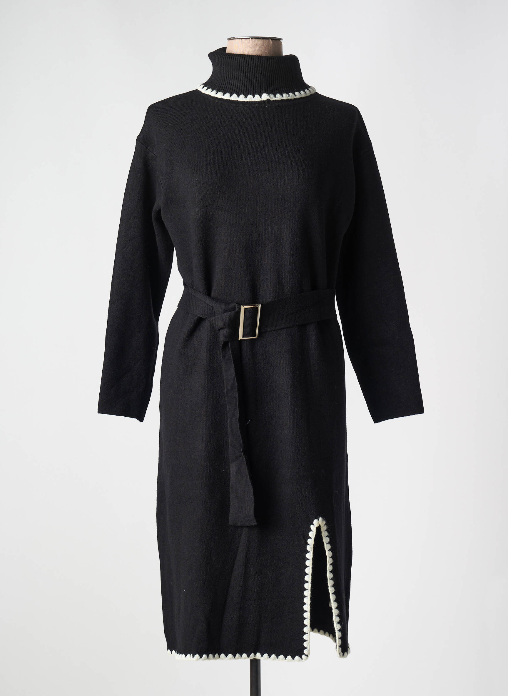 Craquez pour cette robe pull de la marque ANNY, parfaite pour allier style et économies grâce à notre sélection à petit prix. Ce modèle noir séduit par sa coupe ajustée avec ceinture à la taille, un col montant élégant et des finitions contrastées sur le col, le bas et la fente, offrant un look à la fois moderne et raffiné sans compromis sur le budget.