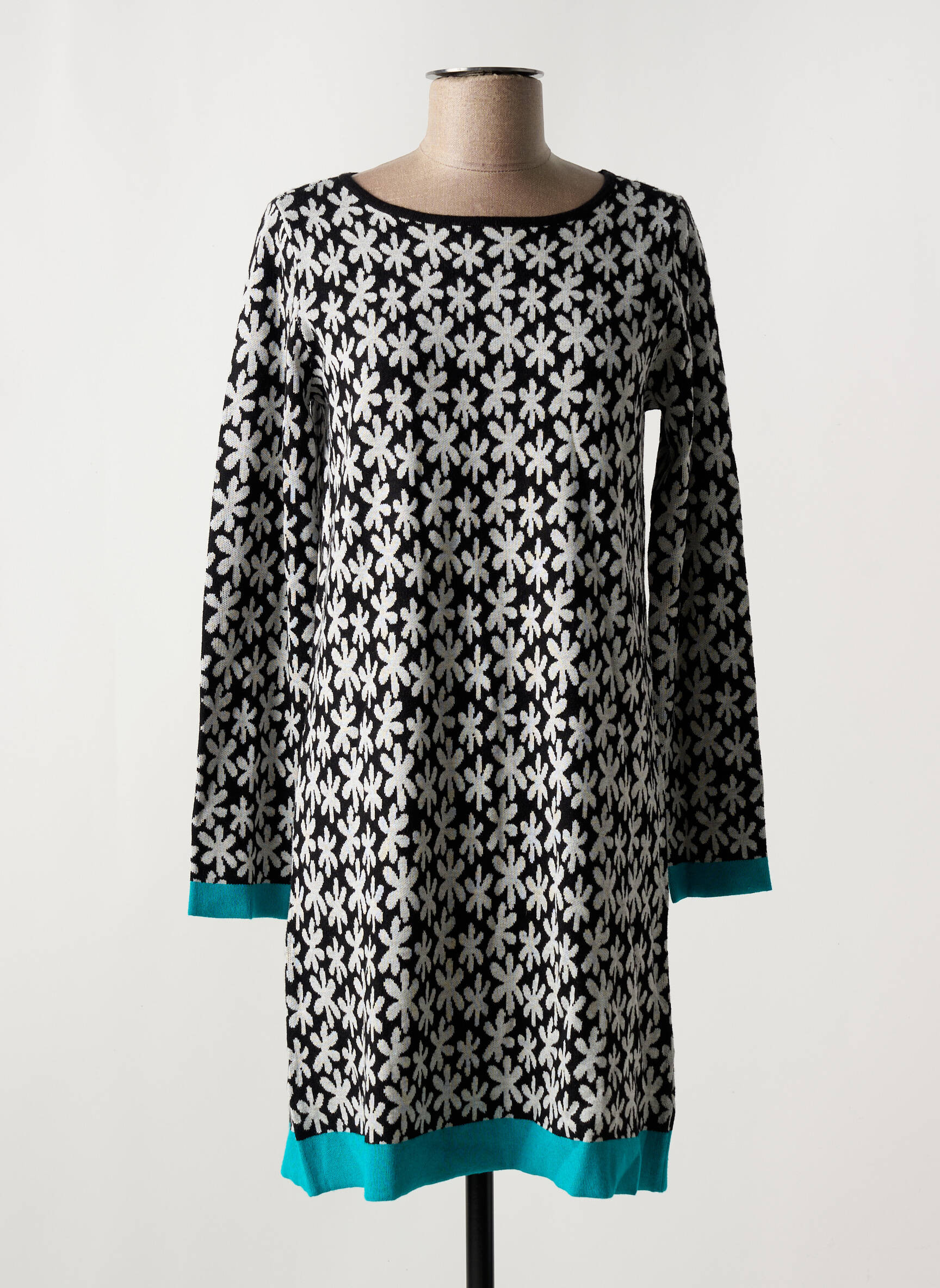 Craquez pour cette robe pull de la marque SURKANA, une vraie pépite à petit prix pour renouveler votre dressing sans se ruiner. Son motif graphique noir et blanc rehaussé par des touches de bleu turquoise aux poignets et à la base ajoute une note de fraîcheur et d’originalité, tout en promettant un confort douillet idéal pour la mi-saison. C’est le bon plan mode à ne pas manquer pour rester tendance à prix mini.