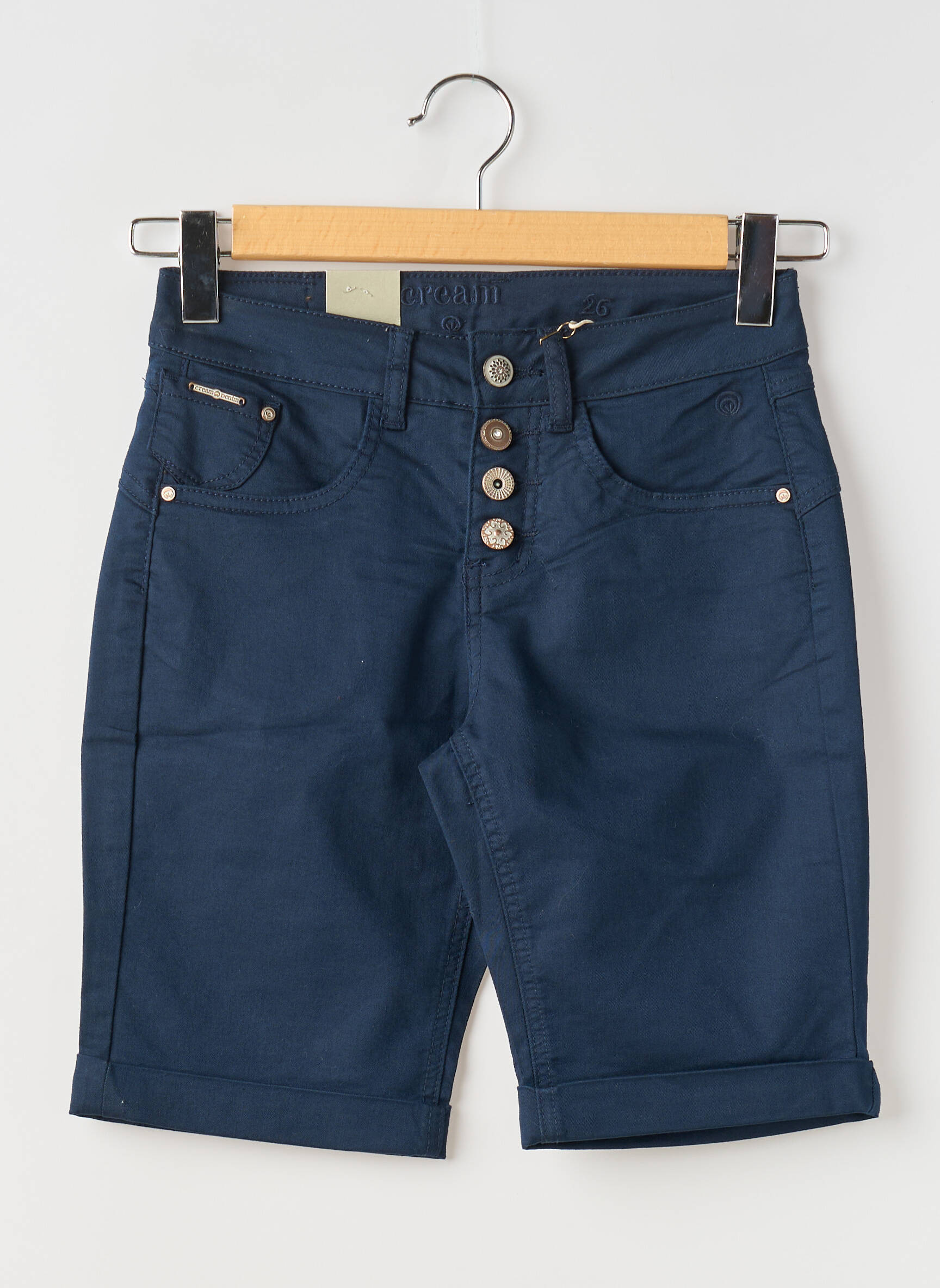 Profitez d’une véritable affaire avec ce bermudas CREAM pour femme, qui combine style et confort à prix mini. Son tissu bleu marine agréable et ses finitions soignées, comme la taille fermée par plusieurs boutons joliment disposés, apportent une touche moderne facile à associer à toutes vos tenues estivales, une pièce idéale pour celles qui cherchent à se faire plaisir sans se ruiner.