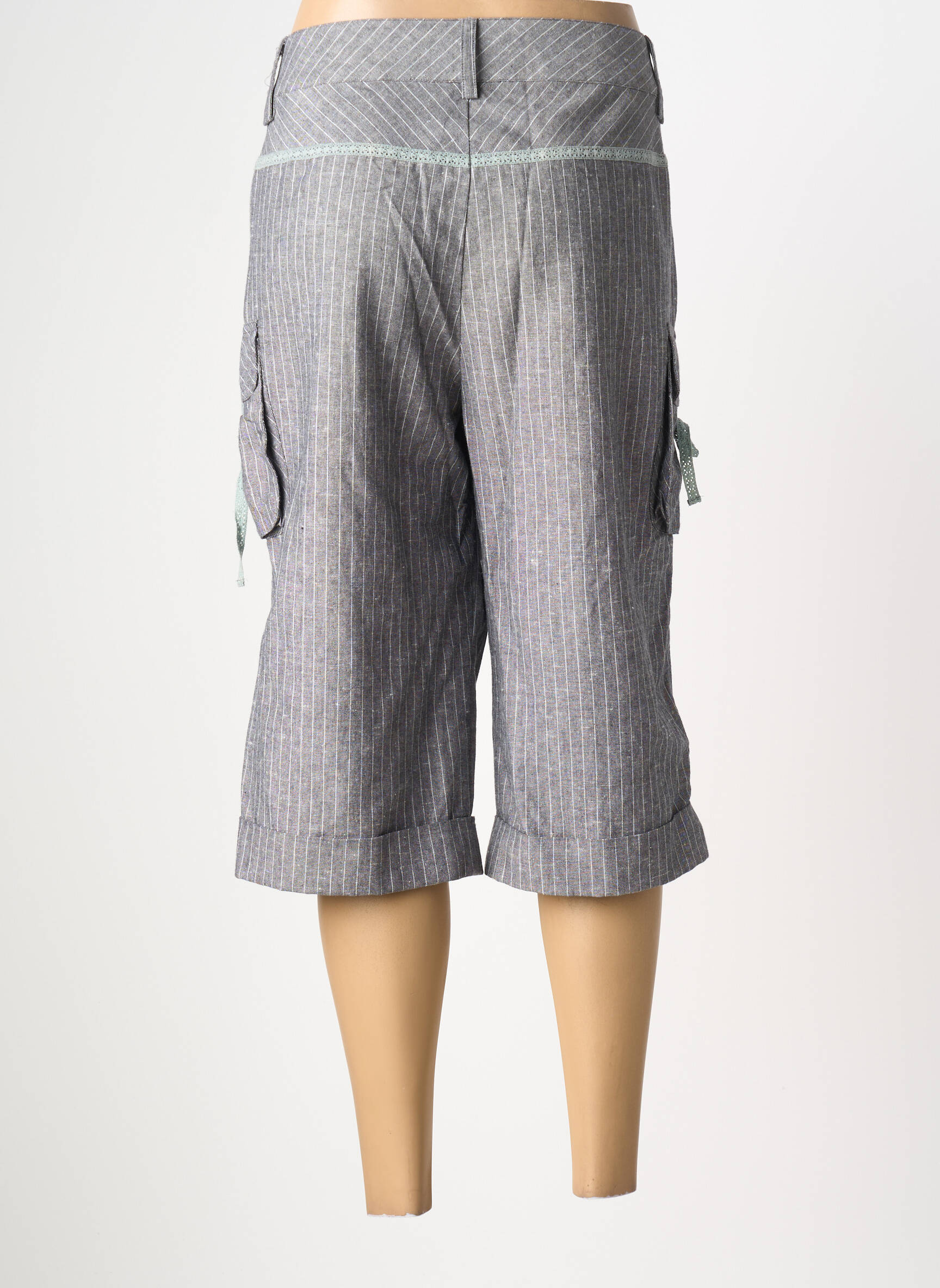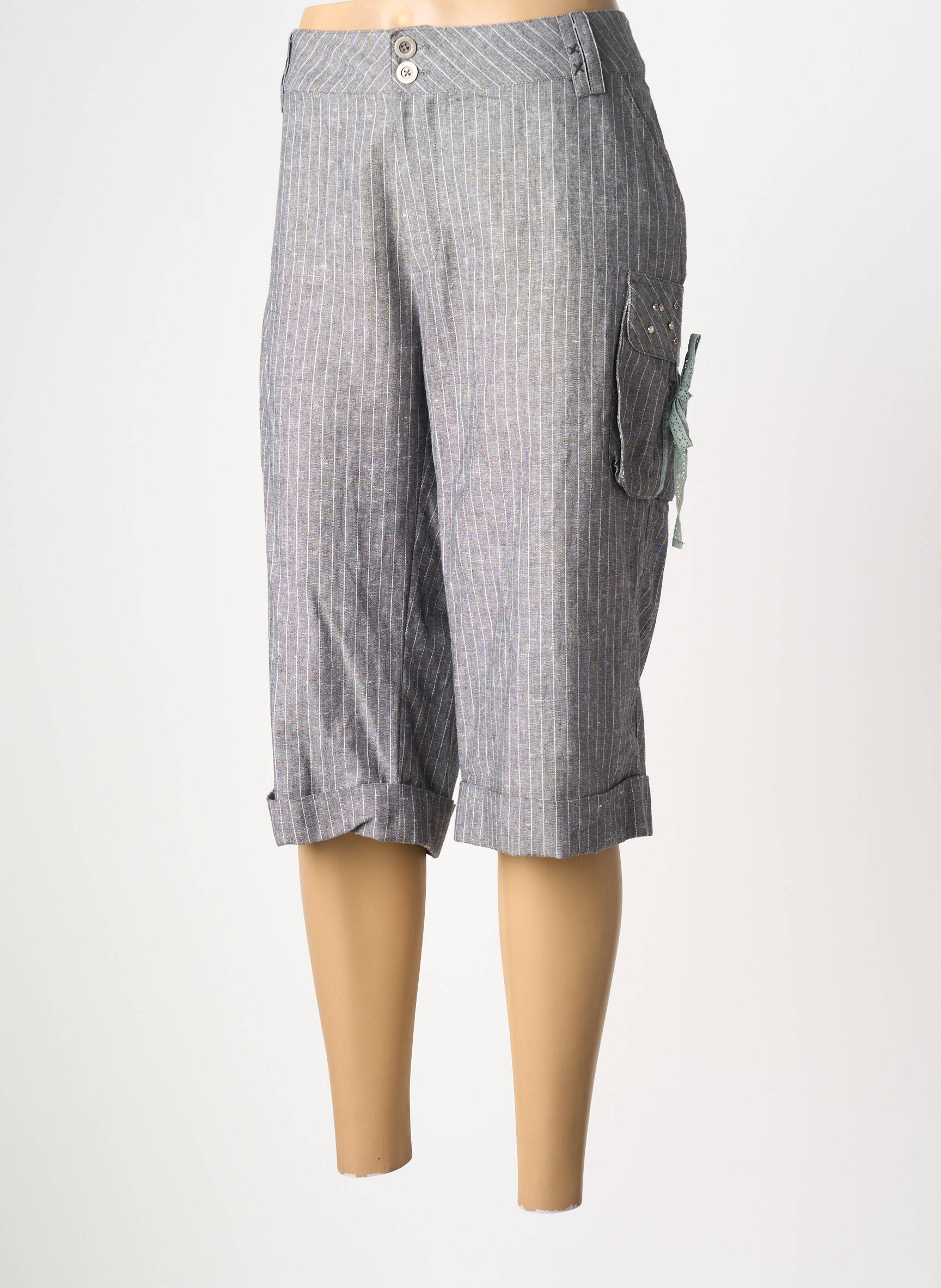 Profitez d'une occasion unique pour compléter votre dressing à prix mini avec ce bermuda femme signé LUCCHINI, alliant élégance et décontraction grâce à sa teinte grisée à fines rayures et sa coupe confortable. Son détail de poche latérale à rabat et nouettes ajoute une touche pratique et tendance, tandis que la finition retroussée sur le bas des jambes affirme un style casual idéal pour toutes les envies d'économies sans compromis sur la mode.