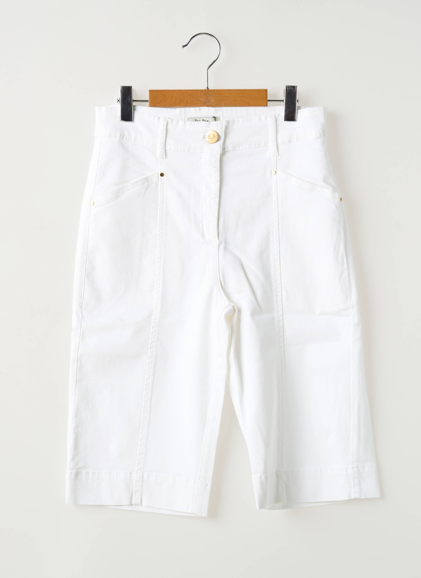 Profitez d’un bon plan mode avec ce bermuda pour femme de la marque PAUL BRIAL, idéal pour donner une touche élégante et décontractée à votre garde-robe sans vous ruiner. Son coloris blanc lumineux s’accorde facilement avec toutes vos tenues estivales, ses poches plaquées sur le devant et sa coupe droite offrent un confort absolu, tandis que les détails dorés et la fermeture soignée à bouton ajoutent une touche raffinée. Voilà une pièce de qualité à prix mini à ne pas manquer pour renouveler votre dressing avec style !
