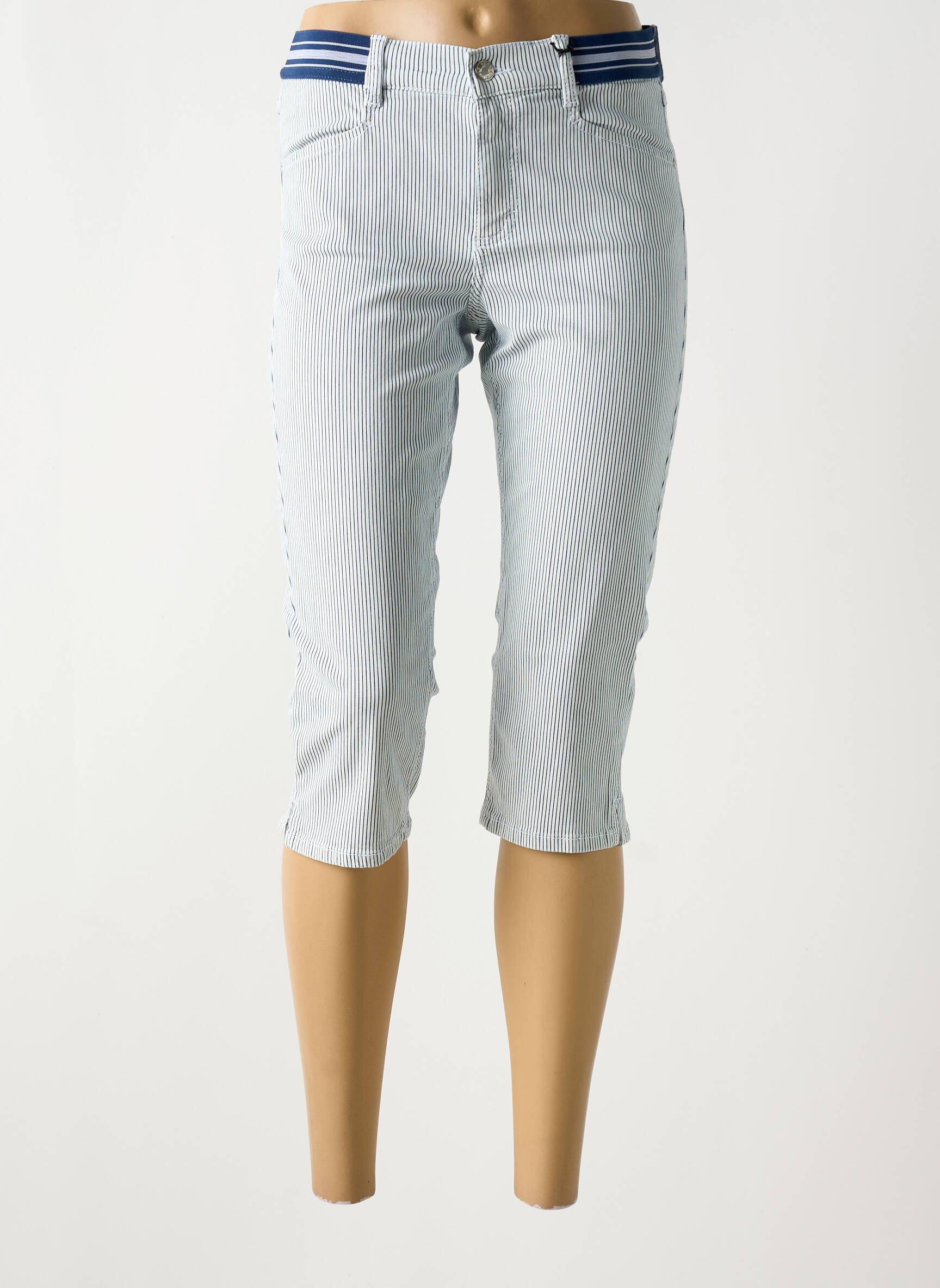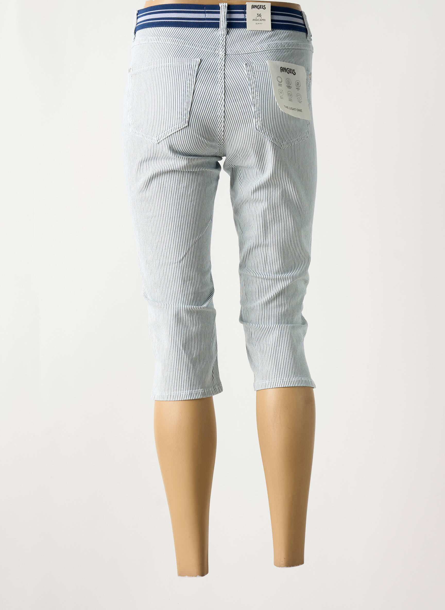 Craquez pour ce corsaire pour femme signé ANGELS, un vrai bon plan pour renouveler votre dressing sans vous ruiner. Sa coupe ajustée valorise la silhouette tandis que la ceinture élastique à rayures apporte une touche sport et tendance, parfaite pour un look décontracté à la ville comme en vacances. Les fines rayures verticales ajoutent une note d'élégance et allongent la jambe, faisant de ce modèle un incontournable à petit prix pour un style estival réussi.