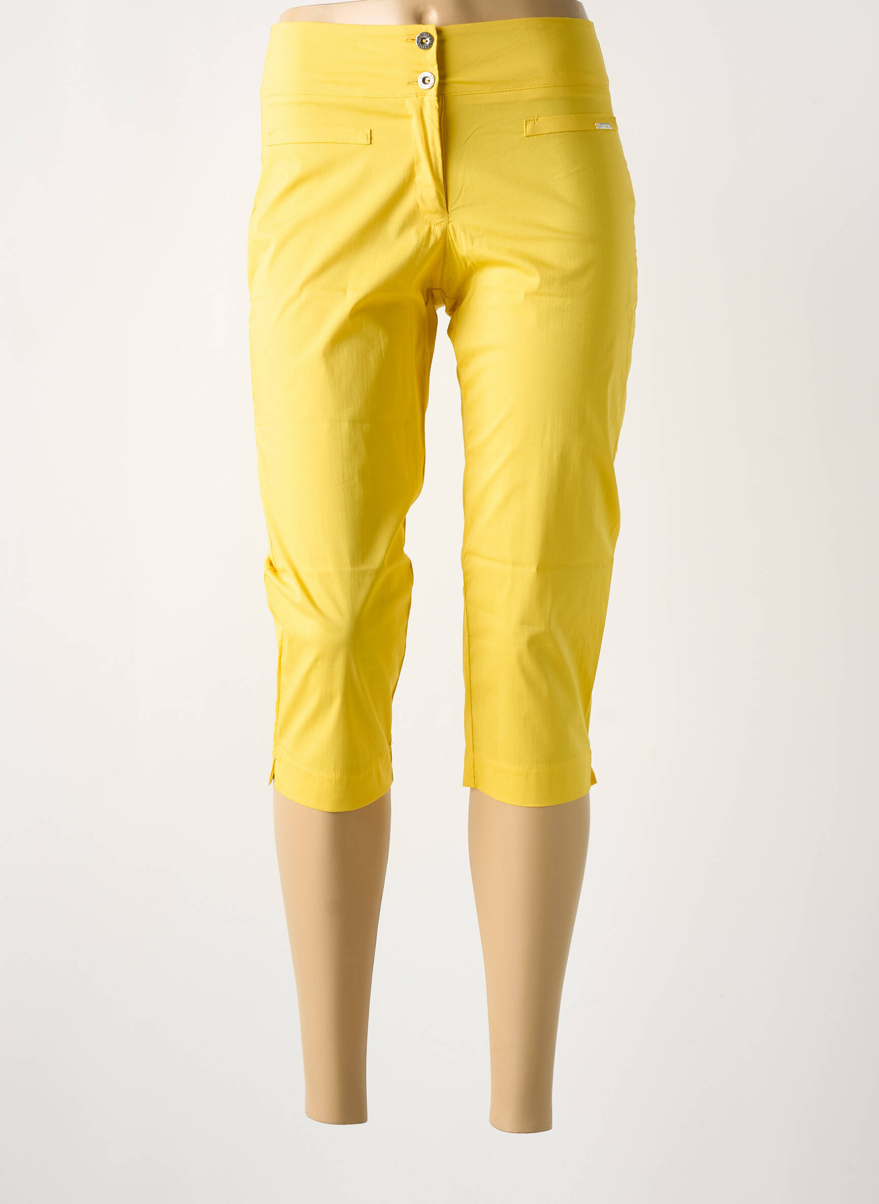 Profitez d'une superbe opportunité avec ce corsaire MALOKA pour femme, une pièce tendance à prix mini qui allie style et dynamisme pour un look estival réussi. Sa coupe ajustée met en valeur la silhouette tandis que la teinte jaune éclatante apporte une touche de bonne humeur à toutes vos tenues décontractées. Les petits boutons et la fausse poche discrète à l’avant mettent en avant le souci du détail et la modernité de ce modèle, parfait pour renouveler votre dressing sans vous ruiner.