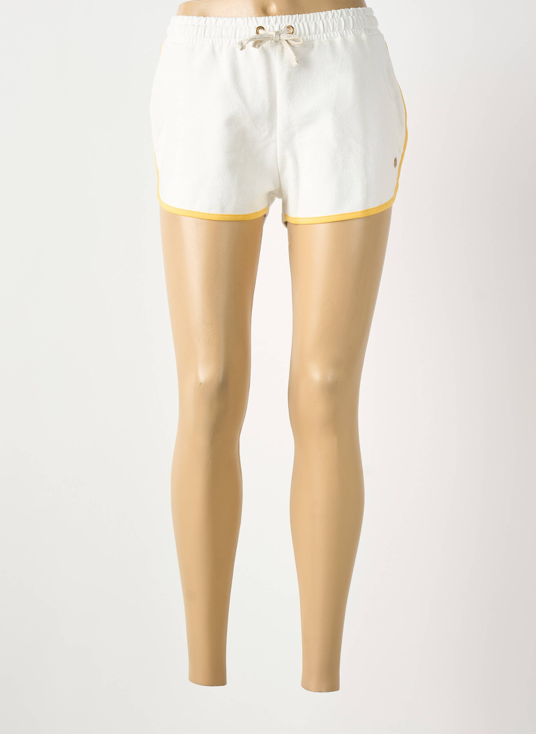 Parfait pour celles qui cherchent à allier style et petits prix, ce short LES TROPEZIENNES PAR M.BELARBI pour femme séduit par sa coupe féminine et son allure décontractée. Confectionné dans une teinte blanche lumineuse, il est souligné par un liseré jaune qui lui apporte une note de fraîcheur et de modernité, tandis que la taille élastiquée avec un cordon de serrage permet un ajustement confortable. Idéal pour profiter des beaux jours sans se ruiner, ce modèle tendance est une opportunité à saisir pour un look chic à prix malin.