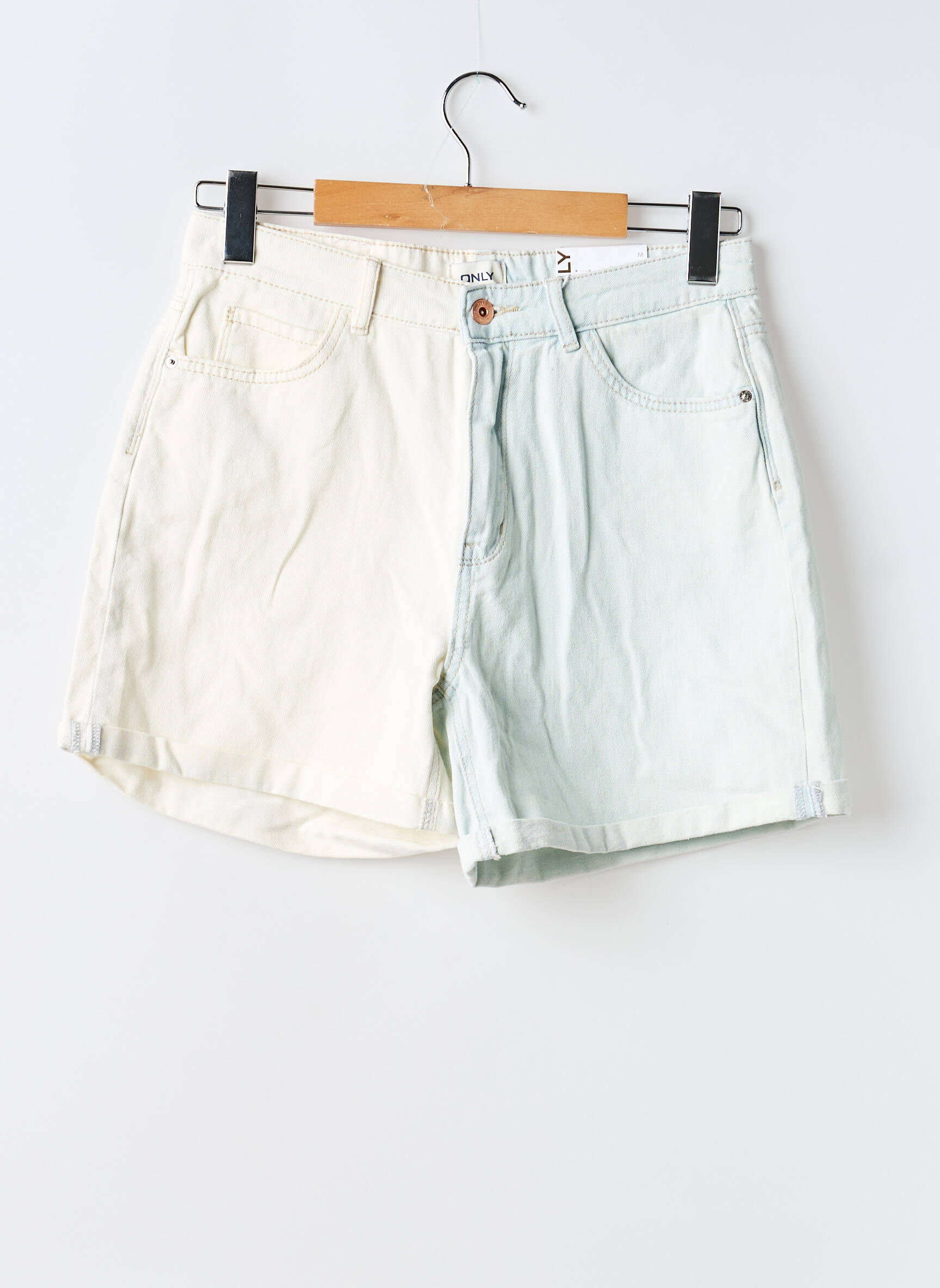 Offrez-vous un look tendance à petit prix avec ce short femme de la marque ONLY, qui joue sur l’originalité grâce à son design bicolore subtilement délavé, alliant parfaitement modernité et esprit casual. C'est la pièce idéale pour donner du caractère à votre dressing tout en profitant d’une belle offre déstockage à ne pas manquer.