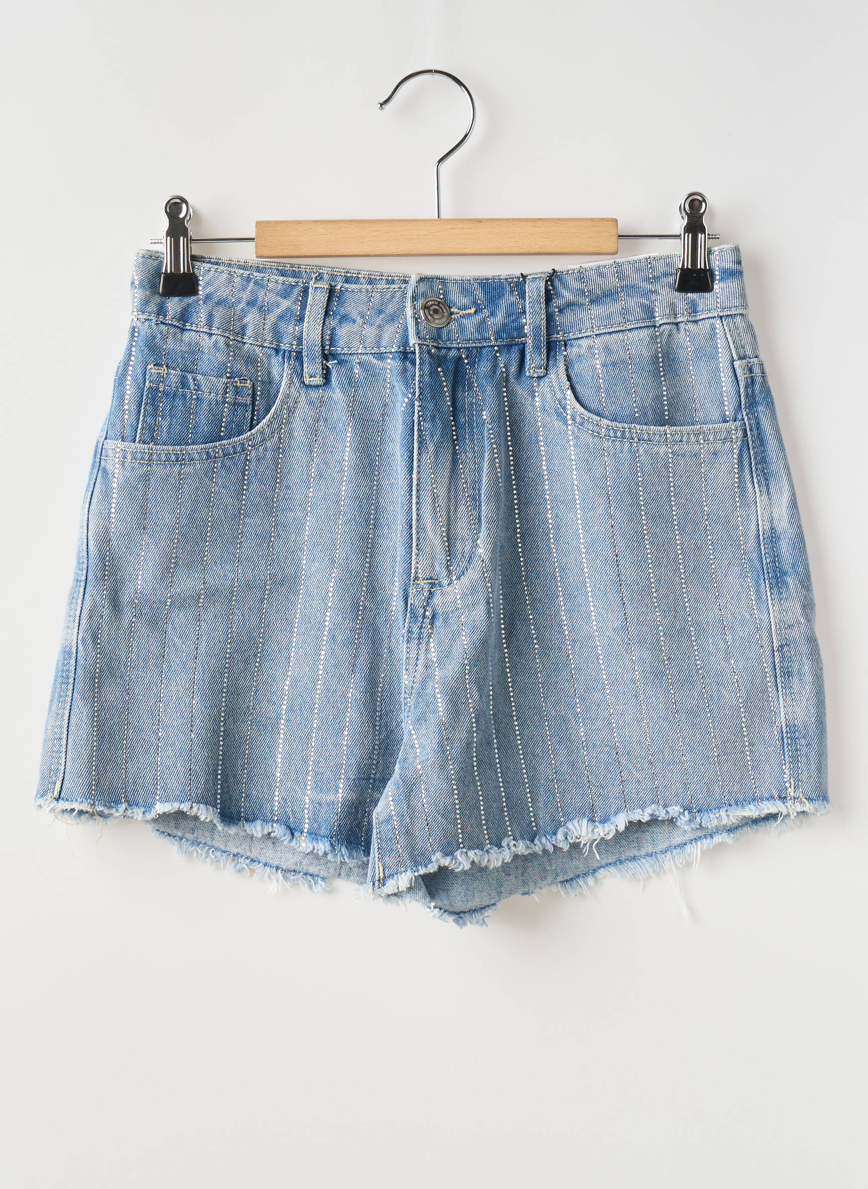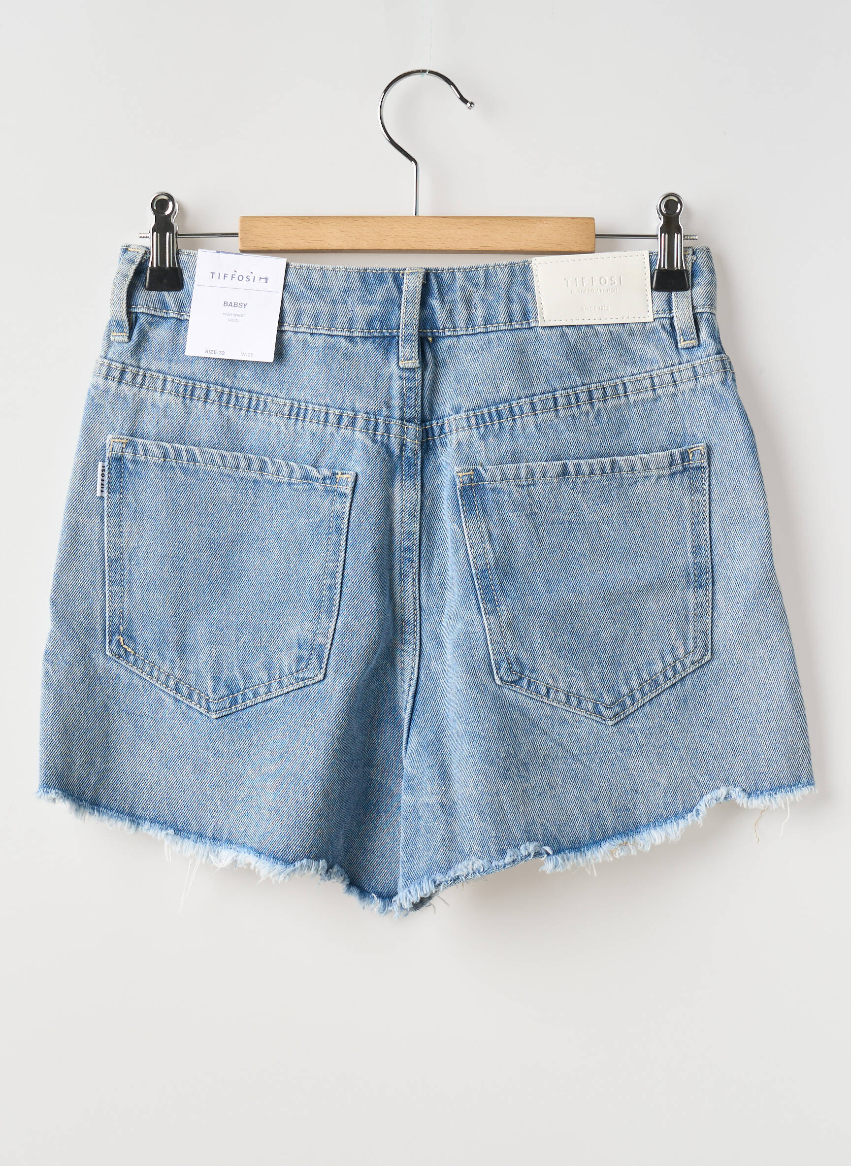 Profitez d’un véritable bon plan mode avec ce short en jean TIFFOSI pour femme, affichant un style casual et tendance à petit prix. Il séduit par son denim bleu clair agrémenté de fines rayures discrètes, sa coupe taille haute flatteuse ainsi que ses bords effilochés qui apportent une touche moderne et décontractée, idéal pour composer facilement un look estival sans se ruiner.