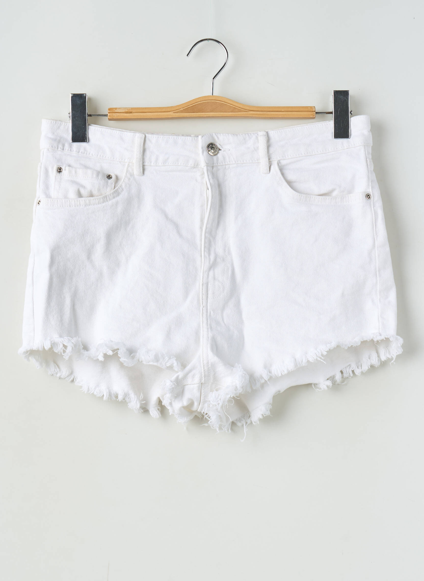 Craquez pour ce short ZARA femme à prix mini et donnez un coup de frais à votre garde-robe sans vous ruiner. Sa coupe taille haute sublime la silhouette, tandis que le tissu blanc éclatant et les bords effilochés apportent une touche décontractée ultra tendance, parfait pour l’été ou vos envies de style casual chic à petit prix.