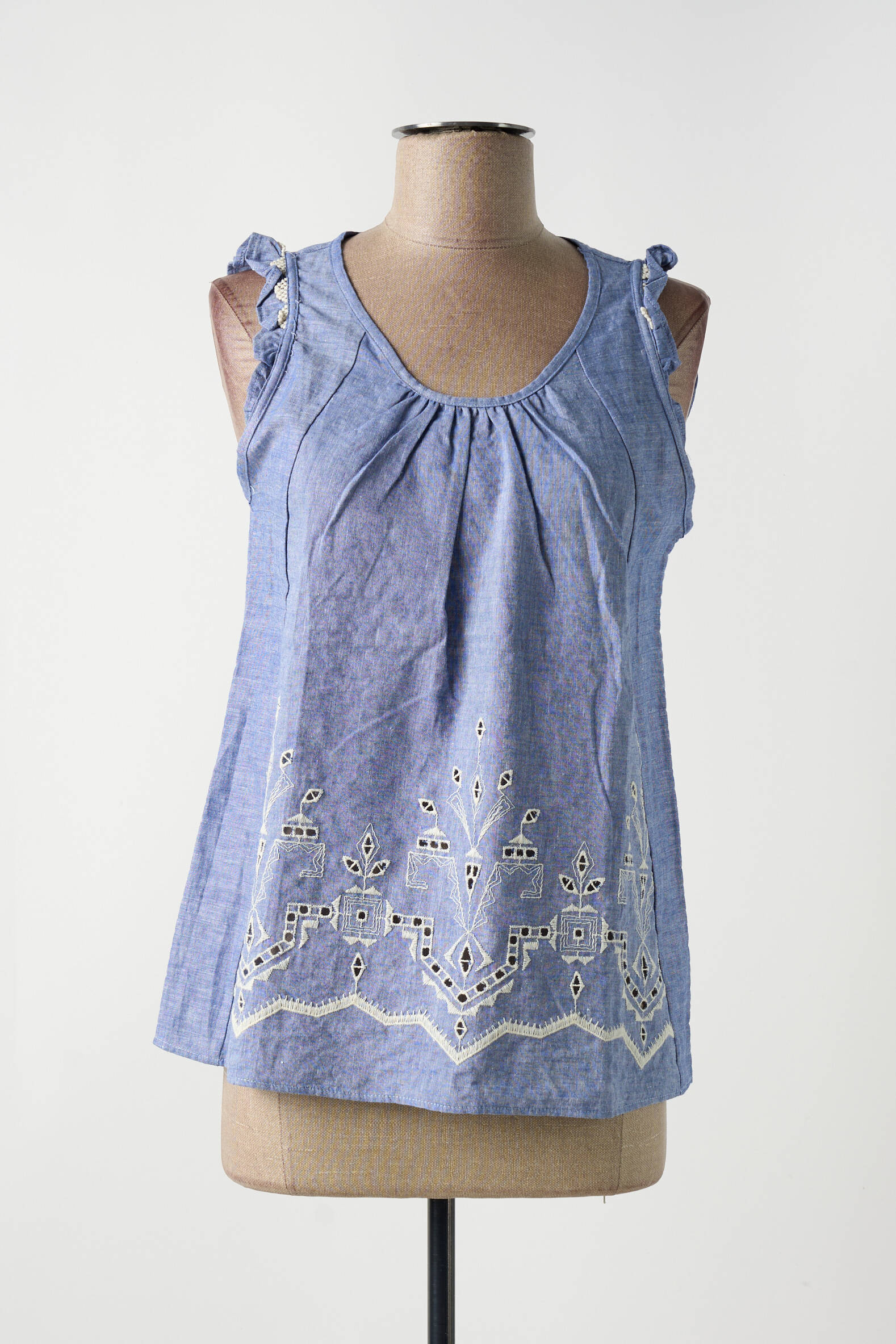Profitez d’un bon plan mode avec ce débardeur ALAN RED pour femme, une pièce légère et tendance, parfaite pour l’été sans vous ruiner. Sa couleur bleu clair met en valeur une délicate broderie blanche au bas, ajoutant une touche élégante et raffinée à votre tenue, tandis que ses petits volants sur les épaules et son encolure froncée lui donnent une allure féminine tout en assurant un confort optimal au quotidien. C’est l’opportunité idéale de s’offrir un basique chic à petit prix.