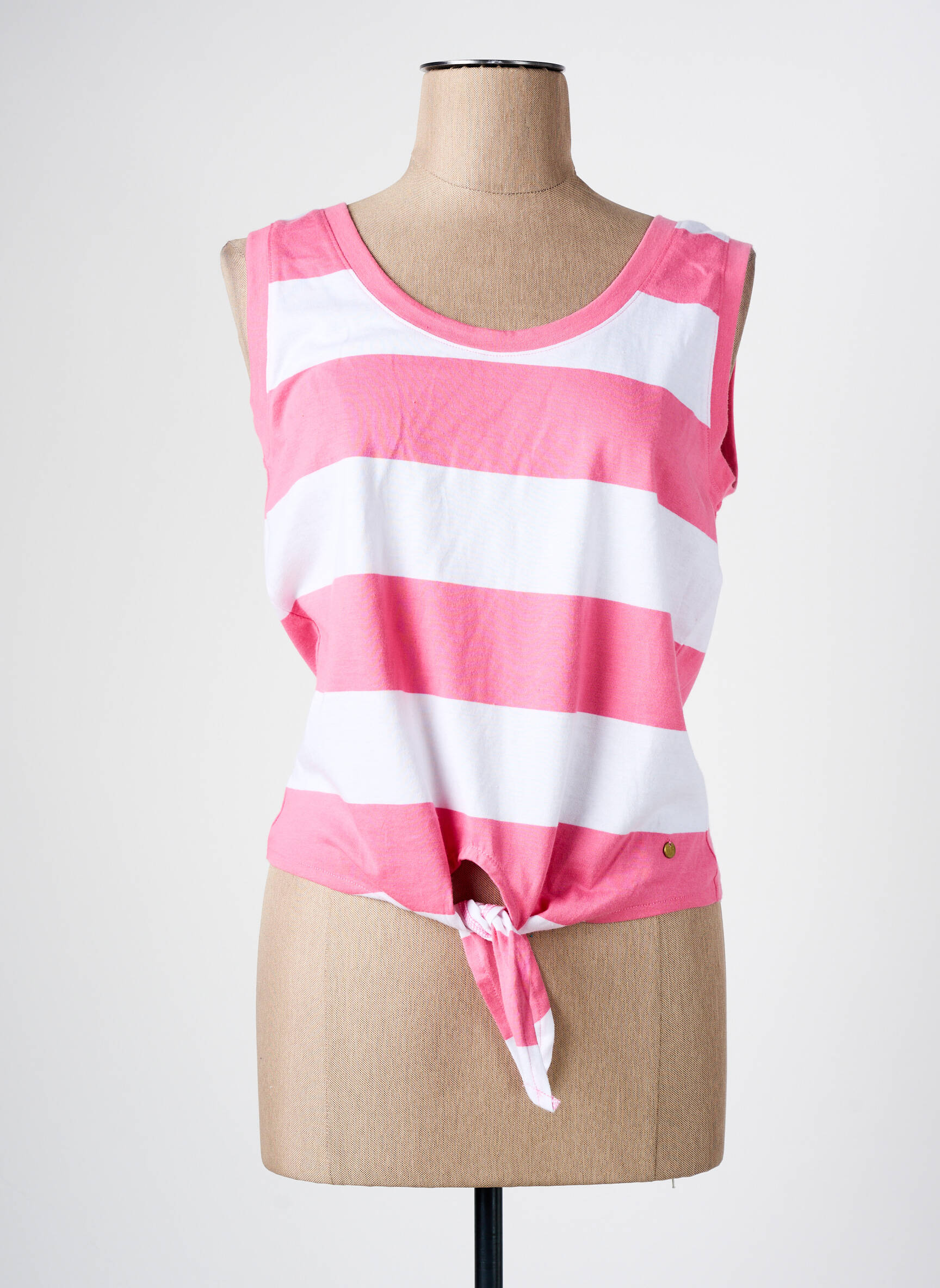 Voici une occasion à ne pas manquer pour rafraîchir votre dressing à petit prix avec ce débardeur C'EST BEAU LA VIE pour femme, alliant douceur et modernité. Ce modèle séduit par ses larges rayures horizontales roses et blanches, apportant une touche vitaminée et estivale à votre allure, tandis que son noeud à l'avant ajoute une note décontractée et féminine idéale pour sublimer vos looks du quotidien, le tout à prix tout doux.