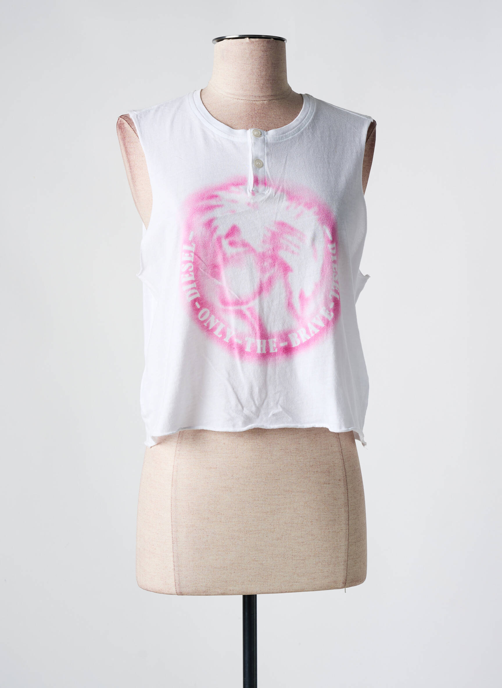 Profitez d’un véritable bon plan avec ce débardeur pour femme signé DIESEL, qui affiche un style urbain branché avec son imprimé graphique rose et ses bords bruts pour un look résolument tendance à petit prix. Ce modèle sans manches à encolure boutonnée offre une coupe décontractée idéale pour composer des tenues originales tout en faisant des économies sur une marque iconique.