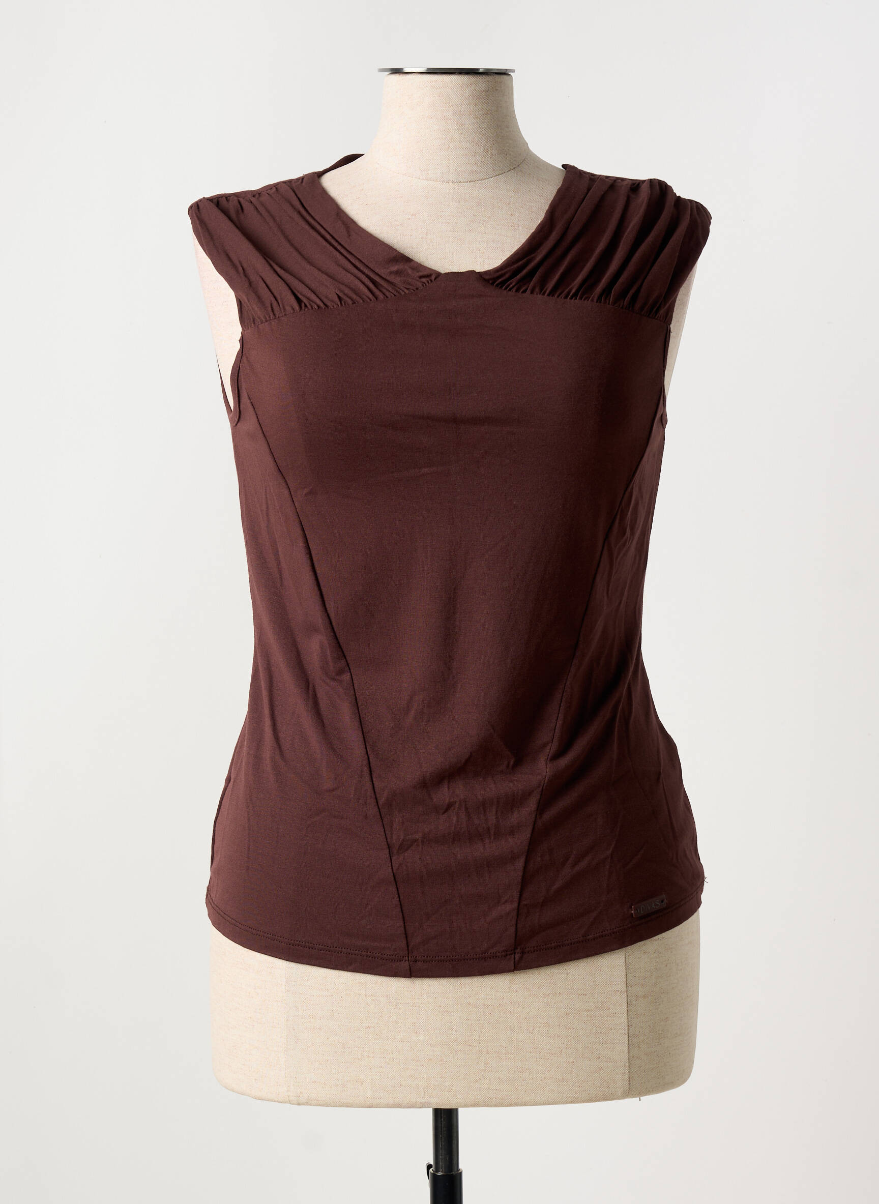 Craquez pour ce débardeur femme de la marque DIVAS à prix mini, idéal pour apporter une touche élégante à votre garde-robe sans vous ruiner. Son coloris chocolat et ses plis délicats au niveau des épaules offrent un charme sobre et raffiné, parfait aussi bien pour une tenue de tous les jours que pour sublimer vos looks plus habillés sans vous priver côté budget.