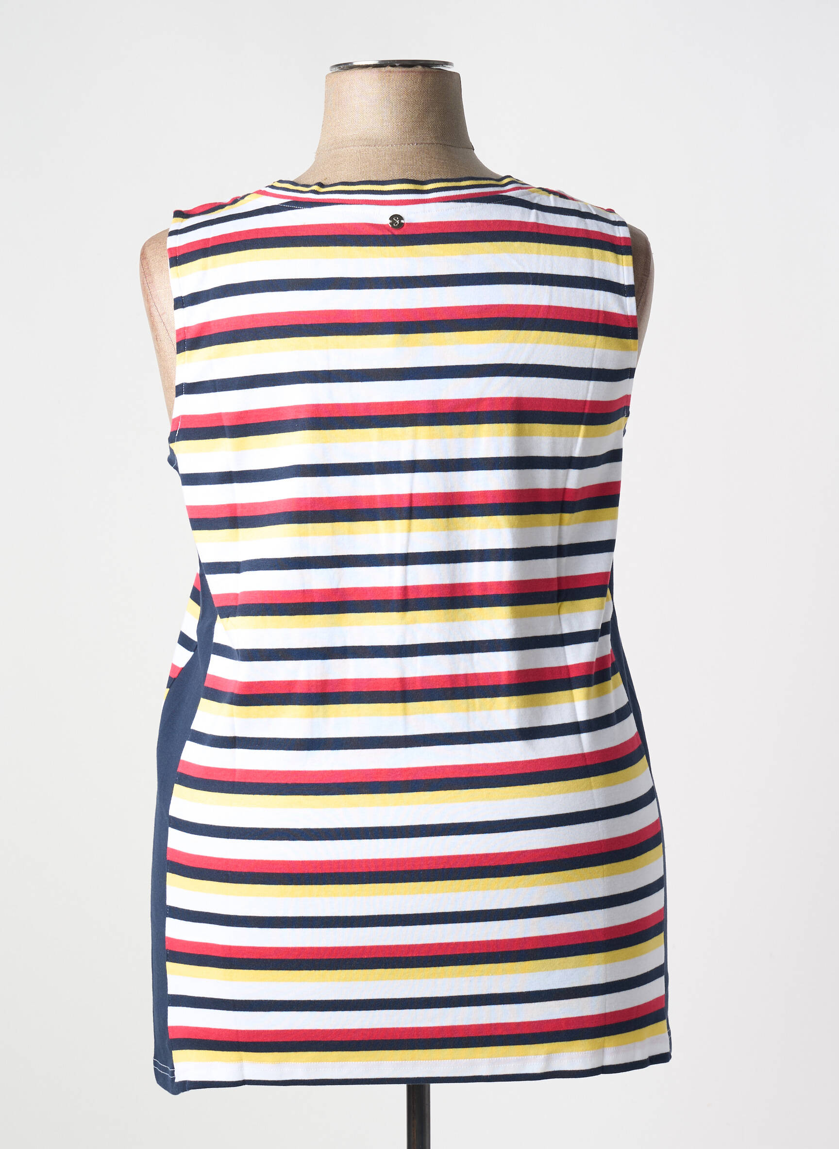 Craquez pour ce débardeur SHEEGO pour femme, un essentiel à petit prix qui apporte une touche de fraîcheur et de dynamisme à votre dressing avec ses rayures multicolores et son empiècement uni sur les côtés, parfait pour composer des looks tendance sans se ruiner.