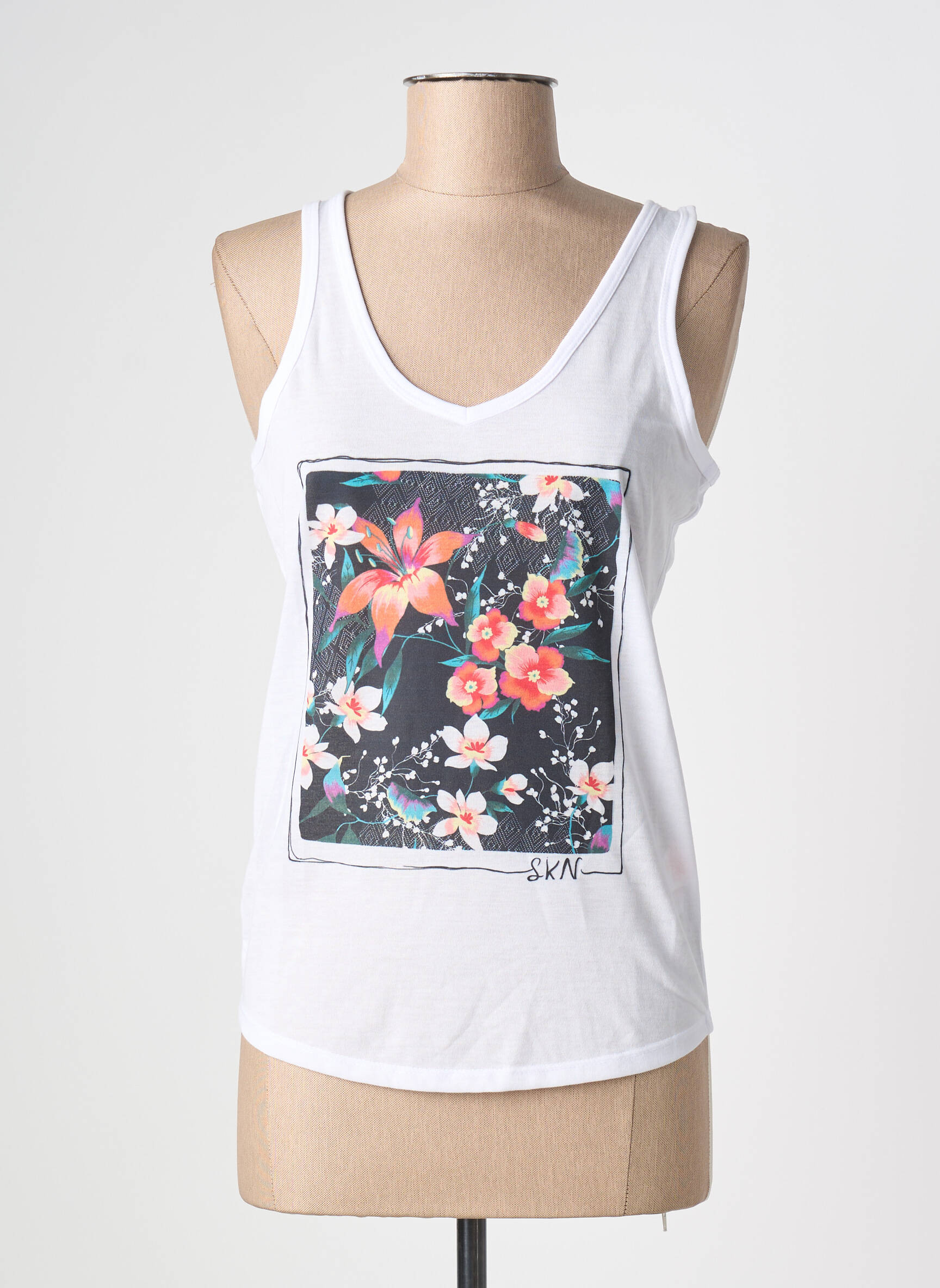 Voici le débardeur femme de la marque SURKANA, une véritable pépite à petit prix pour ajouter facilement une touche de fraîcheur à votre garde-robe. Son coloris blanc intemporel est rehaussé d’un grand motif floral graphique sur le devant, apportant une note tendance tout en restant facile à assortir. Son encolure dégagée et sa coupe décontractée en font un choix idéal pour un look estival confortable à prix mini, parfait pour profiter des petits prix sans sacrifier le style.