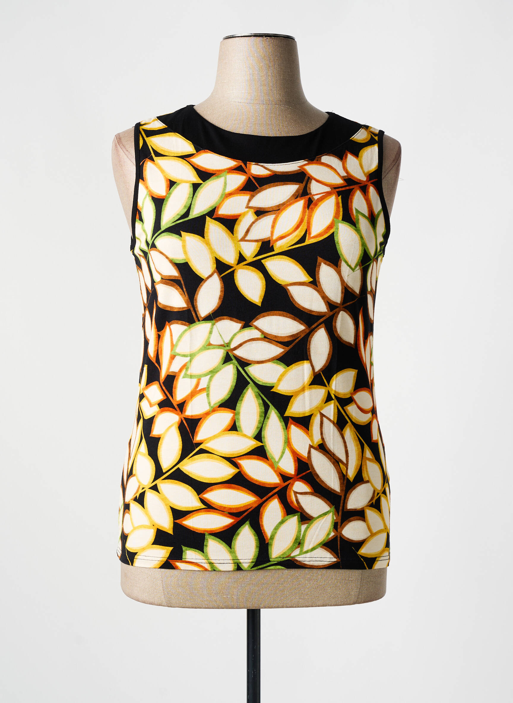 Profitez d'un top TELMAIL à petit prix pour dynamiser votre dressing sans vous ruiner ! Ce débardeur pour femme séduit par son imprimé feuillage multicolore sur fond noir, qui apporte une touche graphique très moderne. Sa coupe droite souligne la silhouette avec simplicité tandis que son encolure ronde reste confortable en toutes circonstances. Un modèle idéal pour donner du peps à vos tenues estivales ou accompagner un blazer pour un look plus sophistiqué, tout en réalisant une vraie économie.