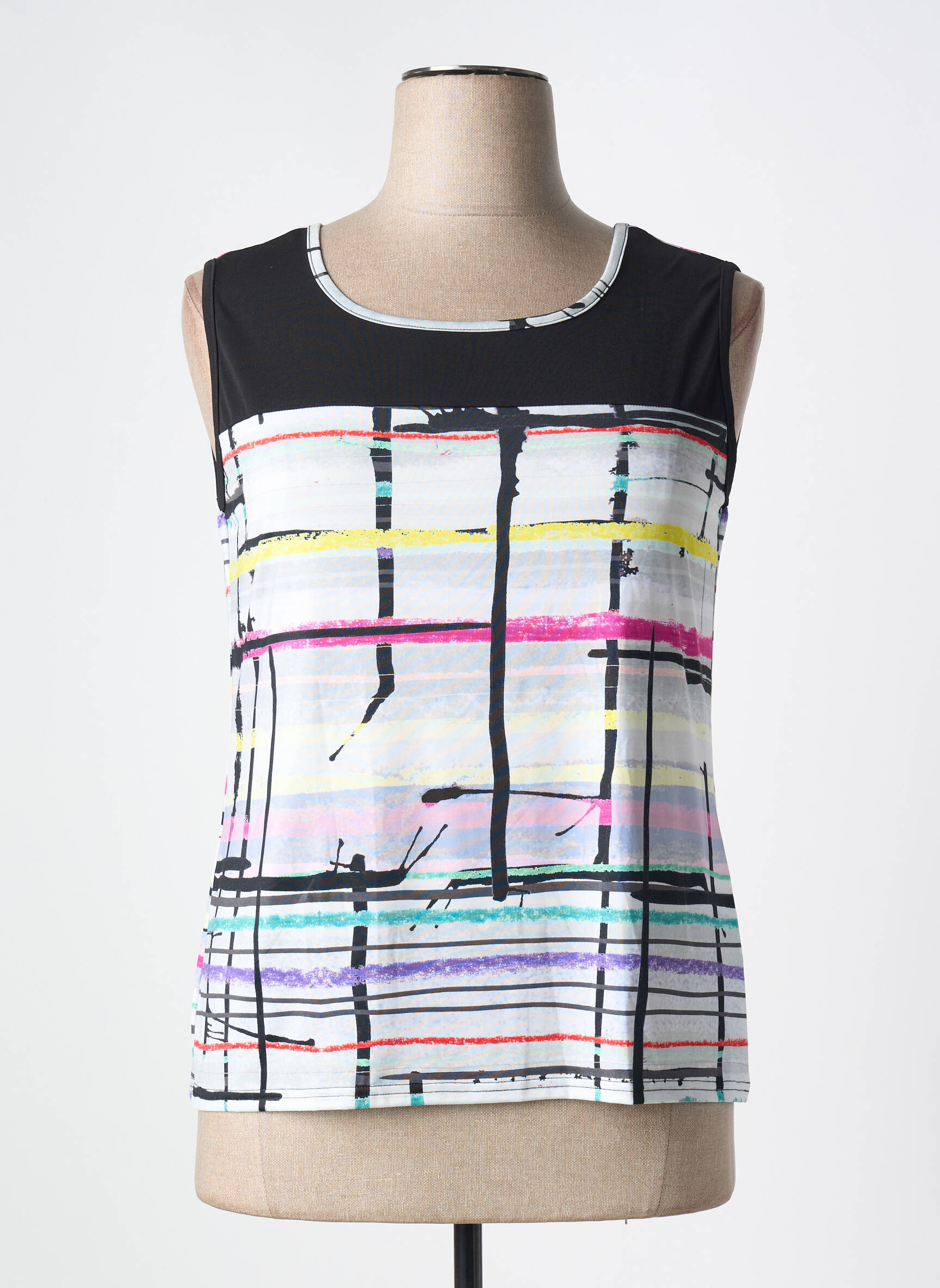 Saisissez l’occasion de vous offrir ce débardeur TELMAIL pour femme à prix mini, idéal pour apporter une touche graphique et moderne à votre garde-robe grâce à son motif à larges rayures colorées rehaussé par un empiècement noir au niveau des épaules. Son look original et facile à porter en fait une pièce parfaite pour profiter d’un style tendance sans vous ruiner.