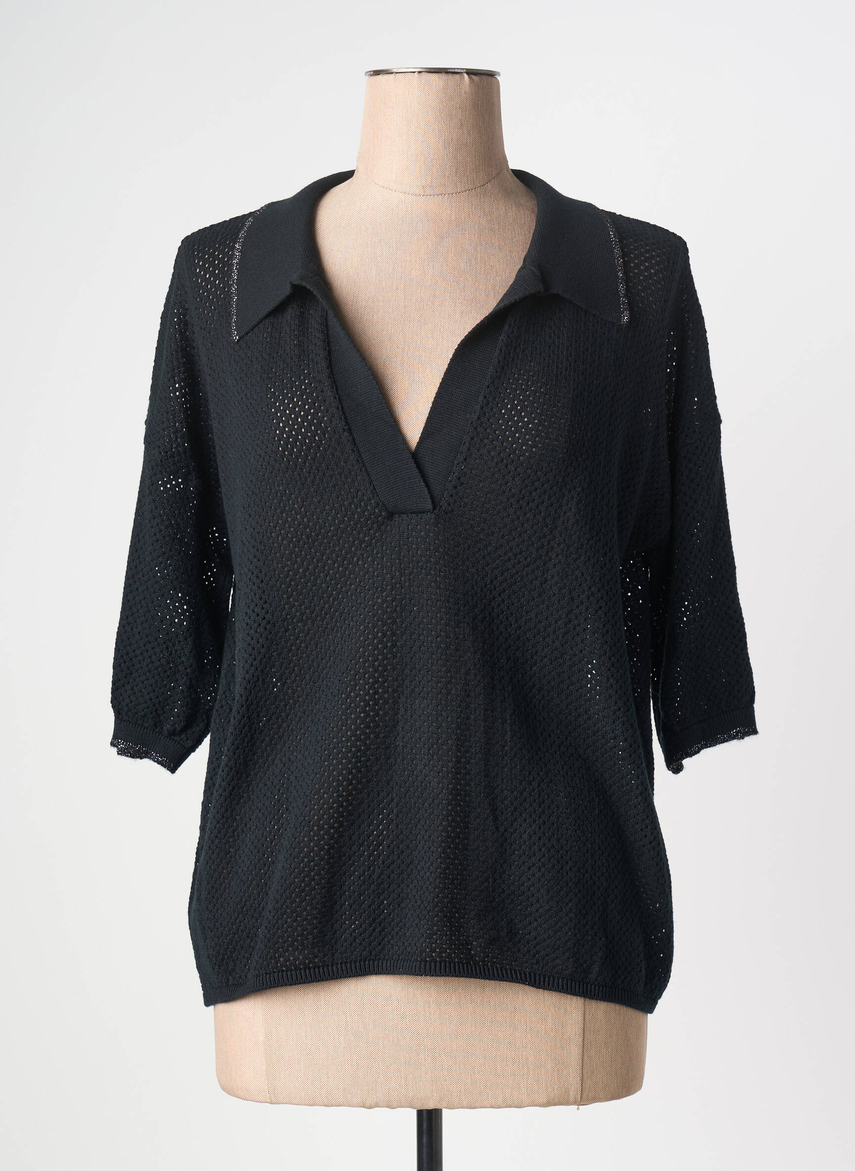 Ce polo s’accorde facilement avec un jean slim ou un pantalon taille haute pour une allure décontractée et moderne. Pour un style plus sophistiqué, il suffit de le glisser dans une jupe fluide et d’ajouter une paire de sandales ou de sneakers blanches. Il peut aussi se porter sur un débardeur coloré pour jouer sur la transparence et apporter une touche de peps à la tenue. Ajoutez quelques accessoires dorés ou un sac bandoulière pour compléter votre look sans effort.