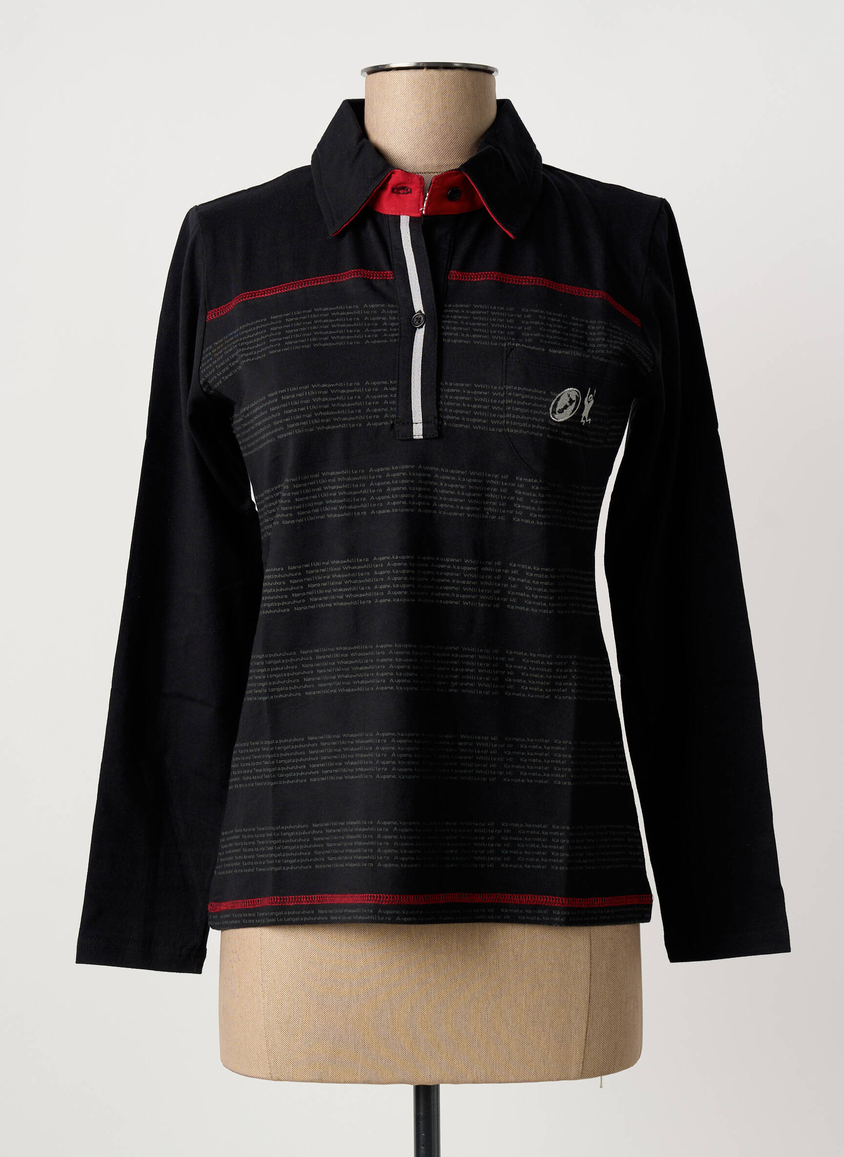Voici une vraie opportunité à prix mini avec ce polo HAKA DANCE pour femme : son look sportif et moderne est mis en valeur par un contraste de noir intense et de fines rayures discrètes, une touche de rouge au niveau du col et du buste, ainsi qu’une fermeture zippée pour un style dynamique et confortable au quotidien. Saisissez cette belle affaire pour renouveler votre garde-robe sans vous ruiner !