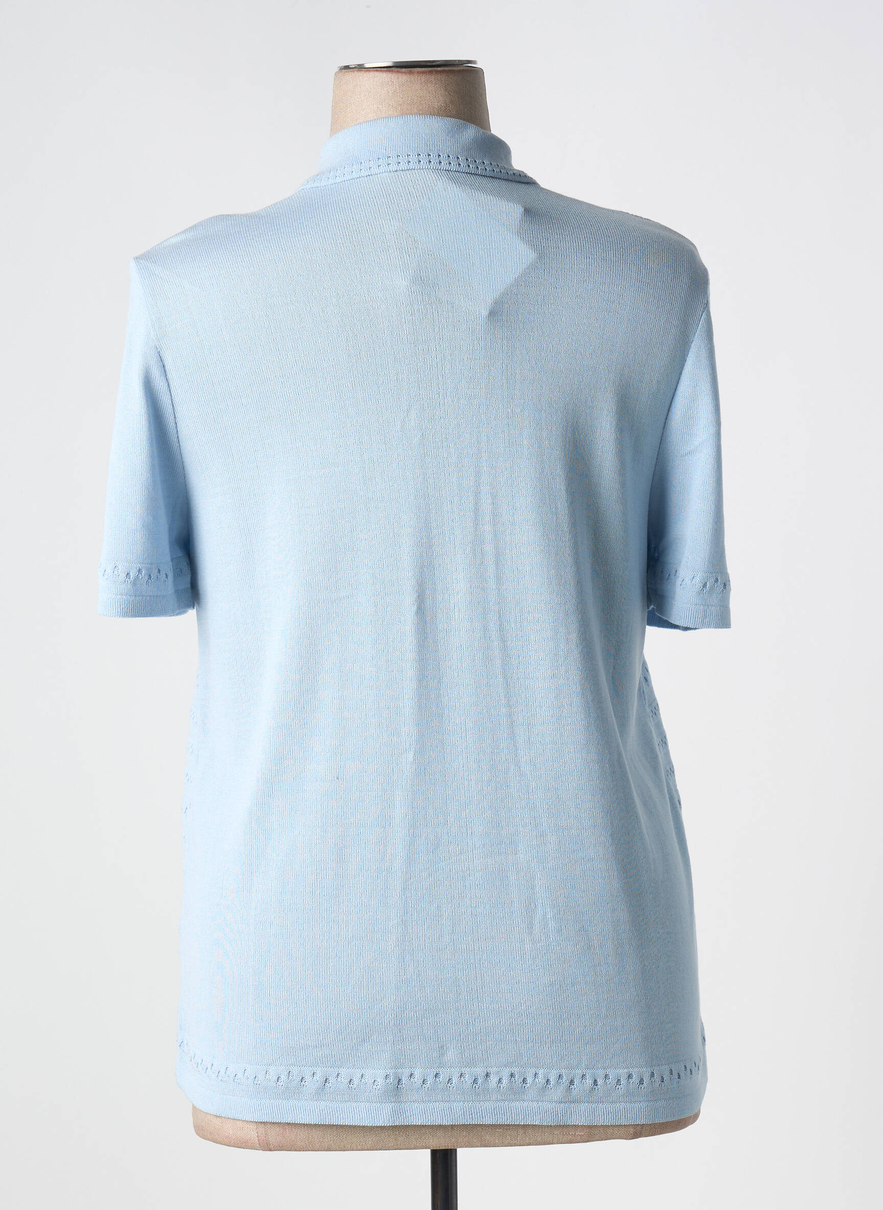 Profitez d’une véritable affaire avec ce polo femme de la marque SAINT CHARLES, proposé à prix déstockage pour une élégance sans compromis sur votre budget. Ce modèle séduit par sa jolie couleur bleu ciel et son motif ajouré qui apporte une touche de fraîcheur raffinée à votre tenue, idéal pour un look à la fois classique et moderne. Doté d’un col polo traditionnel avec une patte de boutonnage discrète, il offre un style intemporel facile à associer, parfait pour sublimer votre quotidien à petit prix.