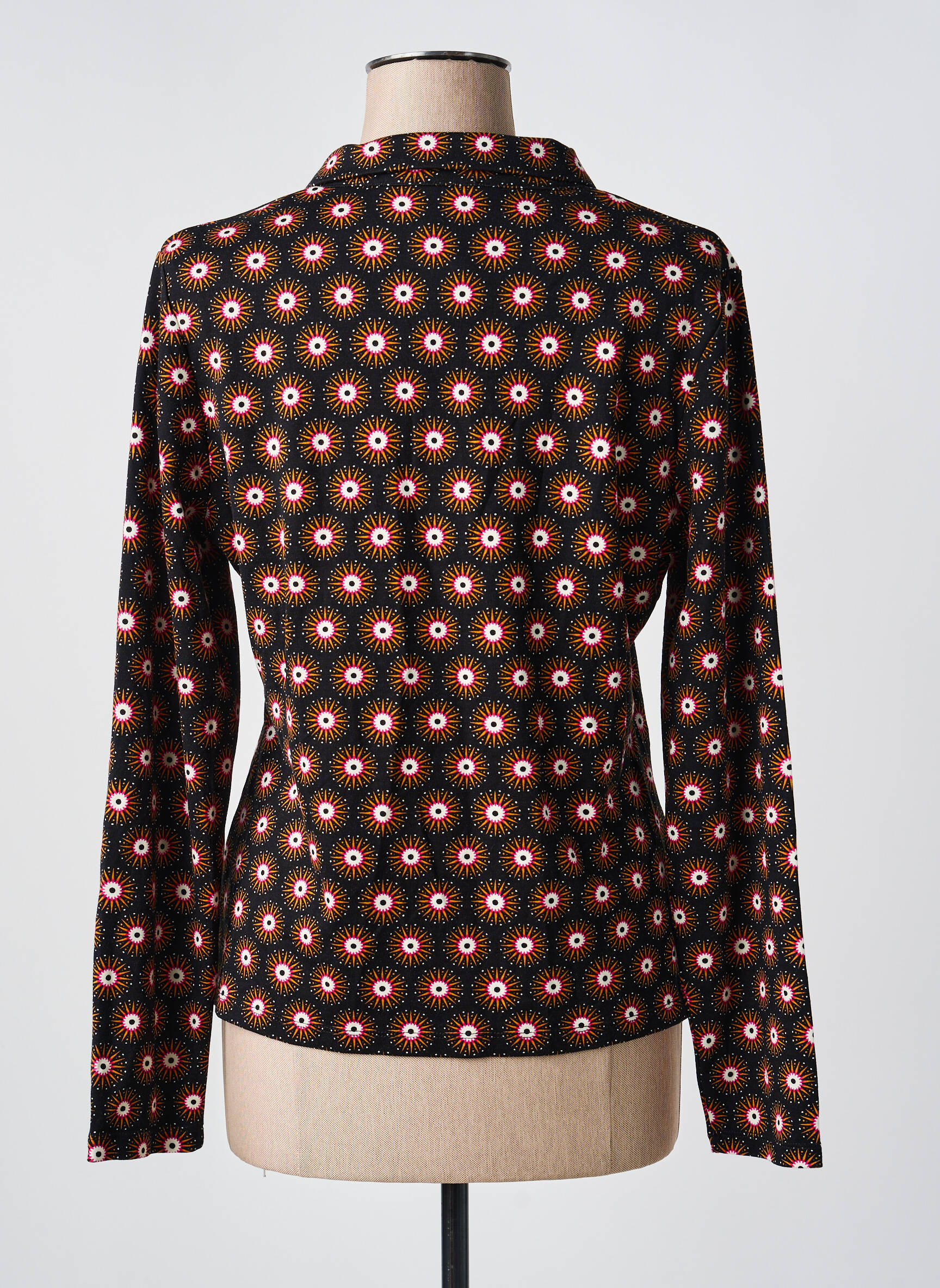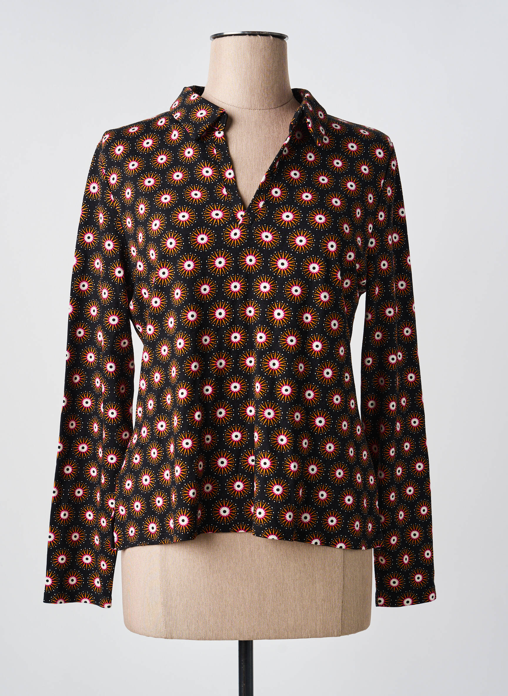 Ce polo se marie facilement avec un jean brut pour un look quotidien ou avec un pantalon uni plus habillé pour dynamiser une tenue de bureau. Pour les journées fraîches, glissez-le sous une veste unie ou un blouson en cuir pour faire ressortir ses motifs. Pour une allure plus féminine, pensez à l’associer avec une jupe simple et des bottines. Quelques accessoires discrets, comme une paire de boucles d’oreilles dorées ou un sac camel, complèteront l'ensemble et mettront en valeur son caractère graphique tout en restant élégante et actuelle.