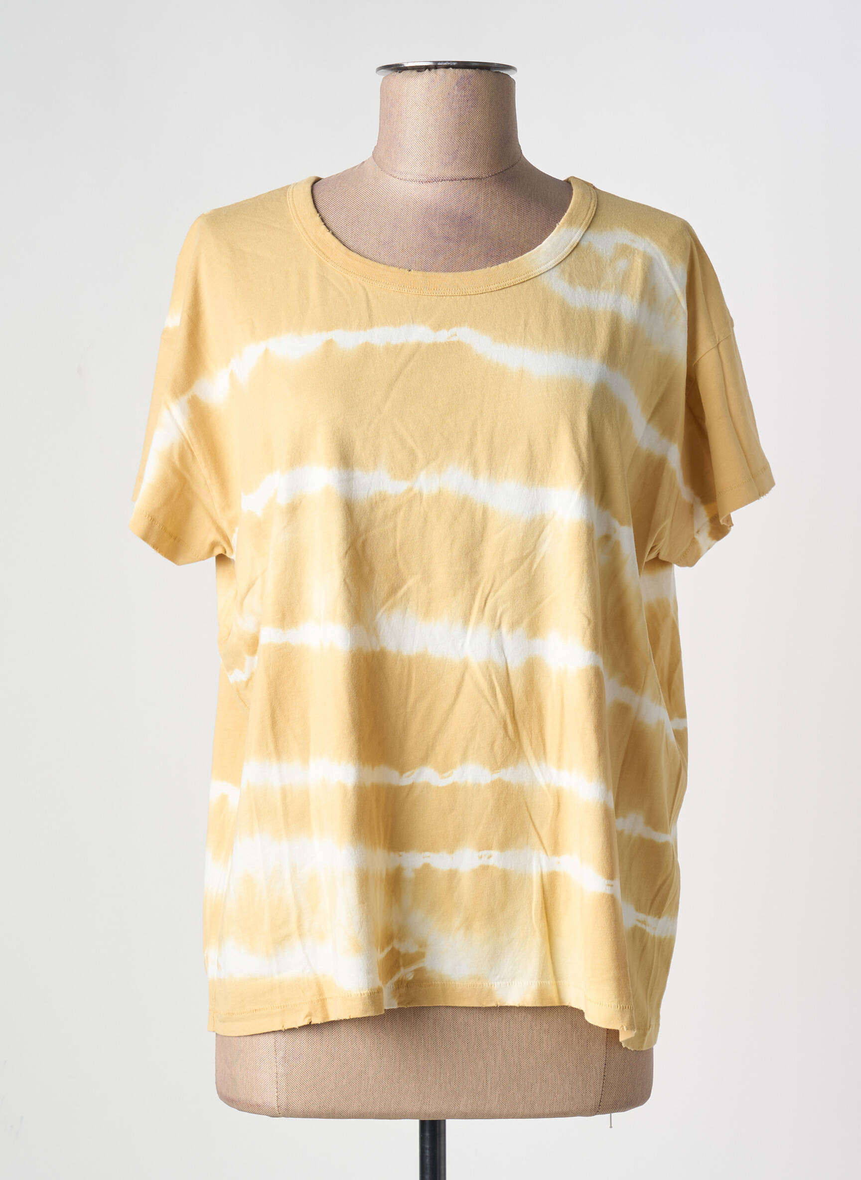 Craquez pour ce T-shirt ACQUAVERDE pour femme, une vraie pépite à petit prix pour illuminer votre dressing. Avec sa coupe décontractée et son motif tie and dye jaune pastel rehaussé de touches blanches, il offre à la fois style et confort, idéal pour une allure estivale ultra tendance sans se ruiner. Saisissez l’occasion de vous offrir une pièce originale signée d’une grande marque à prix tout doux, parfait pour apporter une note fraîche et actuelle à vos looks du quotidien.
