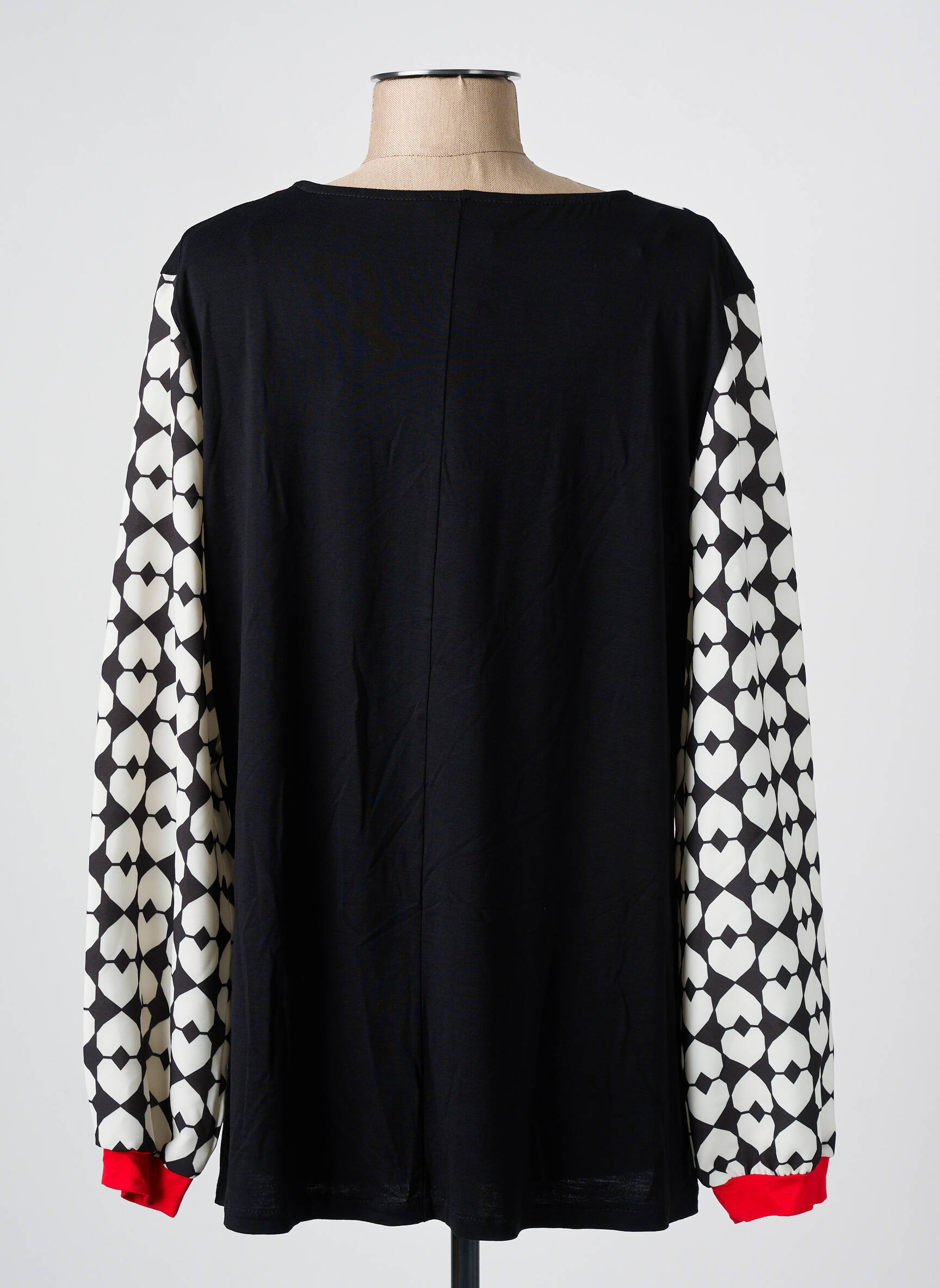 Craquez pour ce T-shirt AN II VITO pour femme, une pièce ultra tendance à petit prix qui combine originalité et allure moderne. Son col en V est subtilement rehaussé par un contraste de bandes blanches et rouges, tandis que les manches longues à motifs graphiques noirs et blancs apportent une touche d’audace à votre tenue. C’est l’occasion rêvée de faire des économies tout en adoptant un style unique !