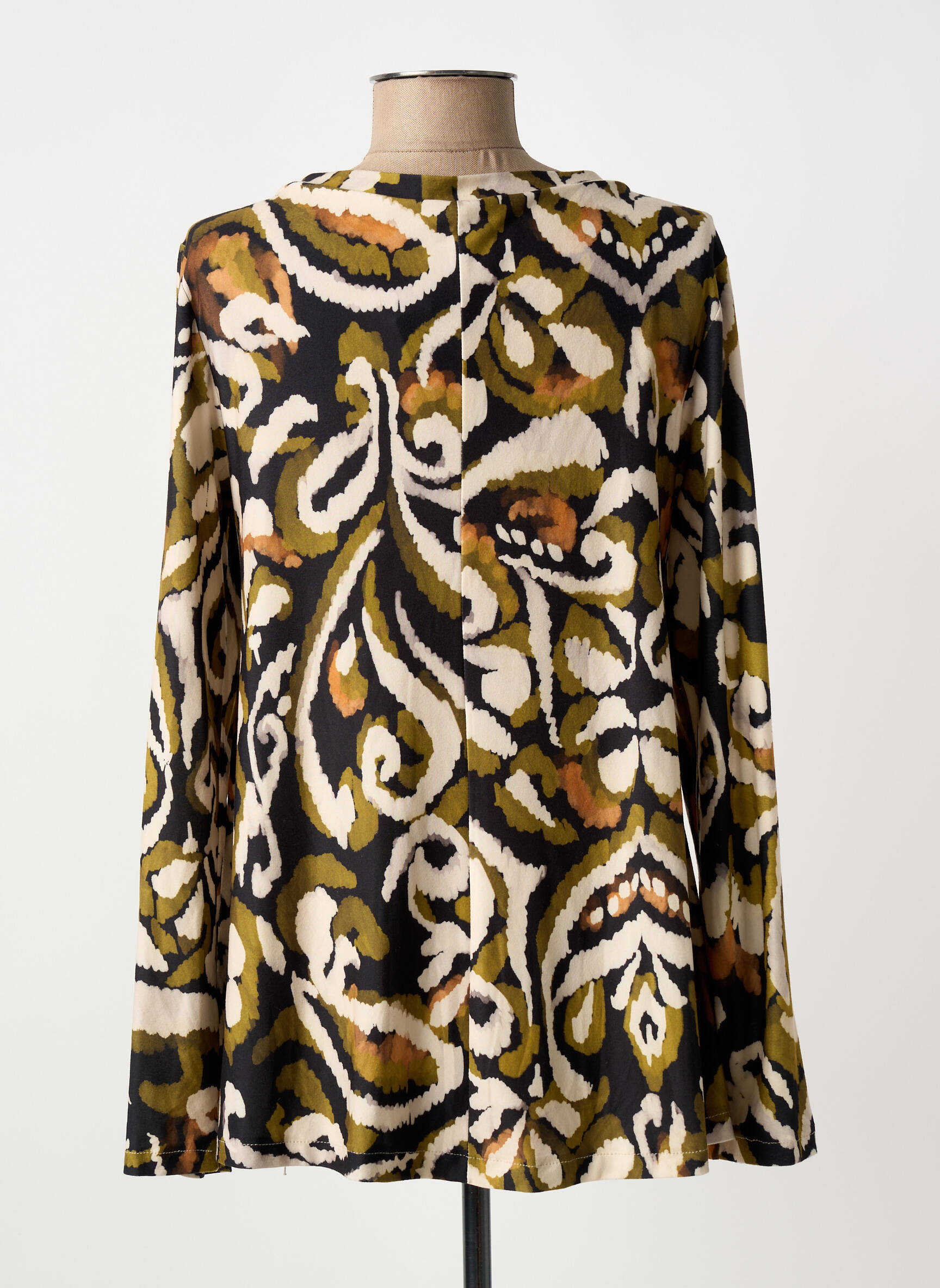 Profitez d'une occasion à ne pas manquer avec ce T-shirt femme AN II VITO à petit prix, parfait pour booster votre garde-robe sans se ruiner. Sa coupe féminine est sublimée par un imprimé original aux tons naturels, oscillant entre le kaki, le noir et des touches beiges et orangées, qui apportent une touche moderne tout en restant facile à associer. Son col en V et ses manches longues en font un basique revisité idéal aussi bien pour le quotidien que pour dynamiser une tenue plus habillée.