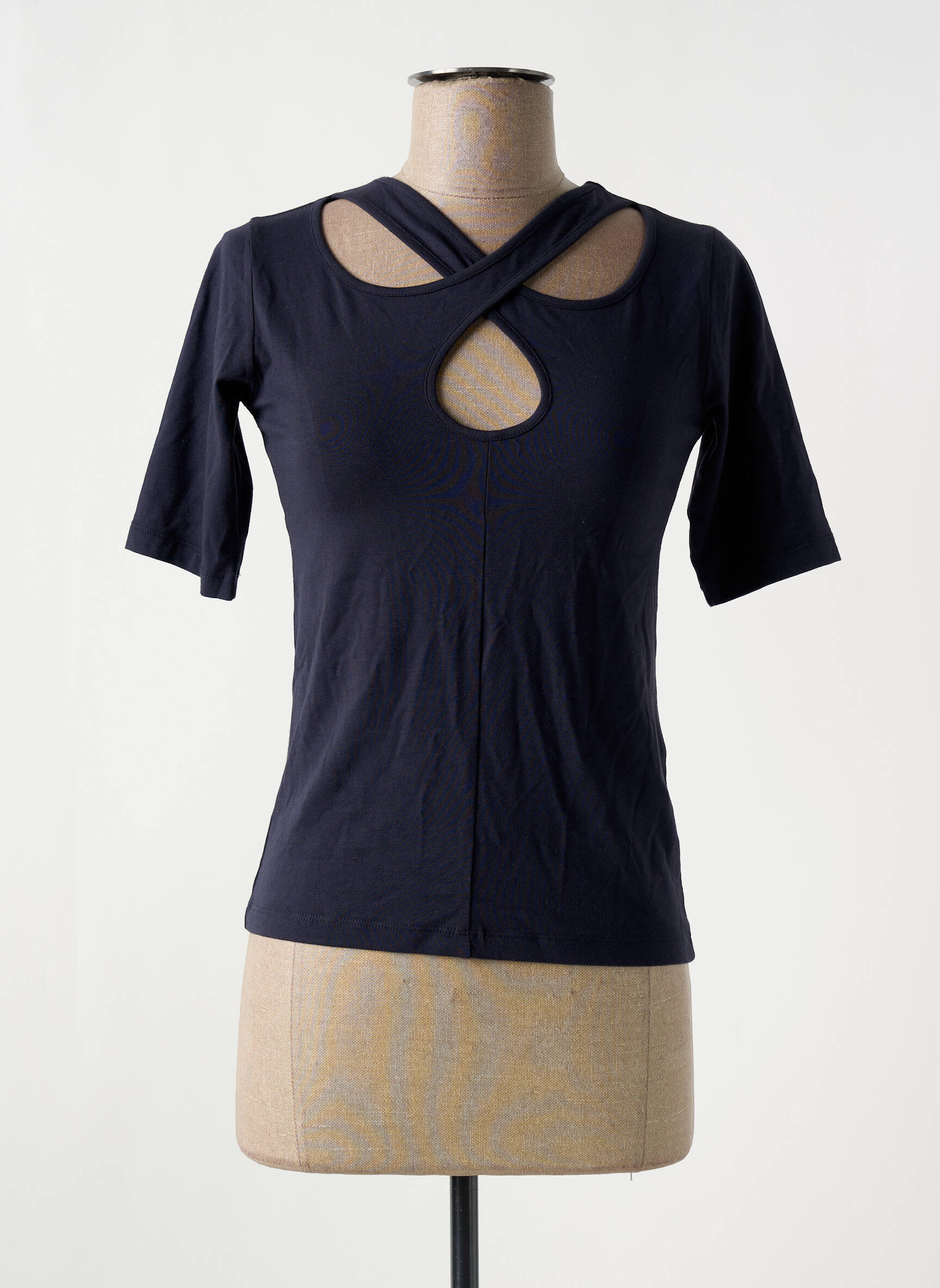 Plongez dans l'audace avec ce T-shirt unique de ASTRID BLACK LABEL, un véritable mélange de style et de confort. Ce modèle noir intemporel se distingue par son design moderne, avec des découpes élégantes sur le devant qui ajoutent une touche de mystère et de sophistication. Les manches courtes assurent une silhouette flatteuse et son encolure croisée offre un look distinctif et contemporain, parfait pour les occasions décontractées comme pour les soirées plus habillées. C'est le choix idéal pour celles qui souhaitent exprimer leur unicité tout en restant à l'aise.