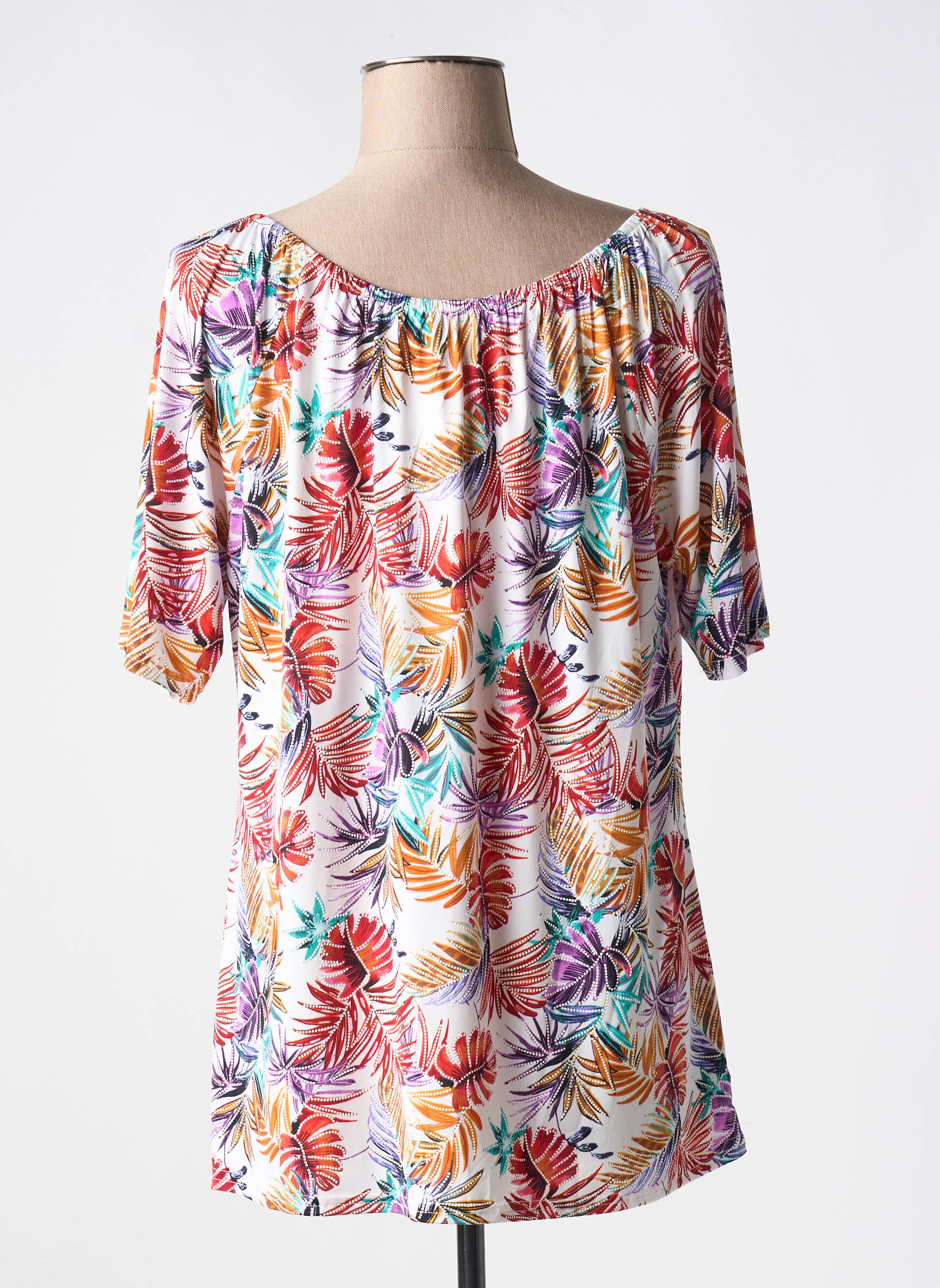 Voici un T-shirt pour femme signé ATLANTA qui vous permet de profiter d'un look estival tout en faisant de vraies économies. Son imprimé feuillage multicolore apporte une touche de fraîcheur et de gaieté à votre garde-robe, tandis que sa coupe ample et son encolure élastiquée mettent en valeur votre silhouette avec légèreté et confort. C’est le bon plan parfait pour relooker votre été sans vous ruiner.