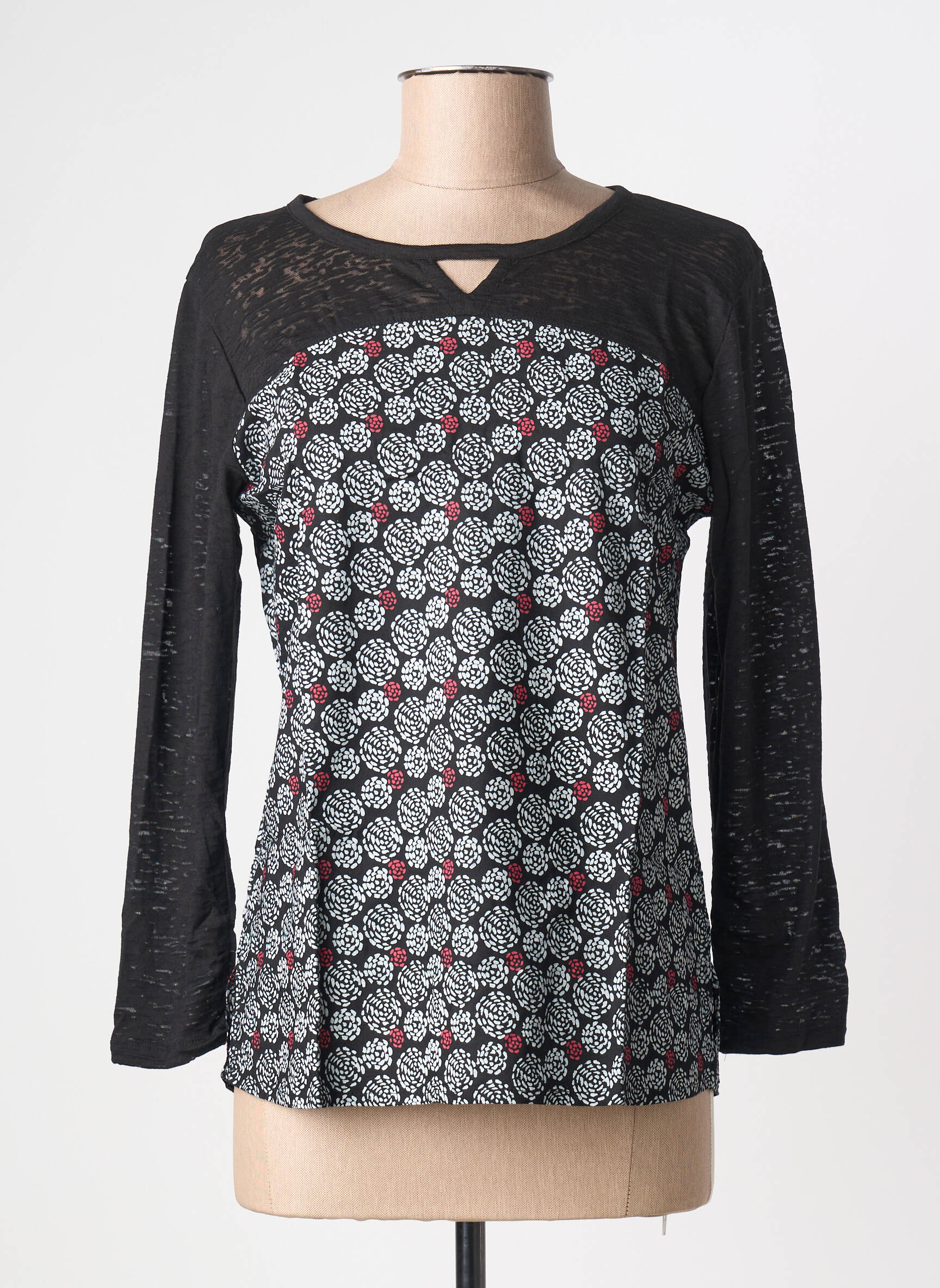 Profitez d'une vraie bonne affaire avec ce T-shirt pour femme de la marque BAMBOO'S, qui séduira par son originalité et son petit prix. Avec sa coupe féminine, il affiche un imprimé graphique noir et blanc relevé de discrètes touches de couleur et se distingue par des manches longues unies et un joli détail ajouré à l’encolure. C’est une pièce parfaite pour ajouter une note tendance à votre dressing sans vous ruiner.