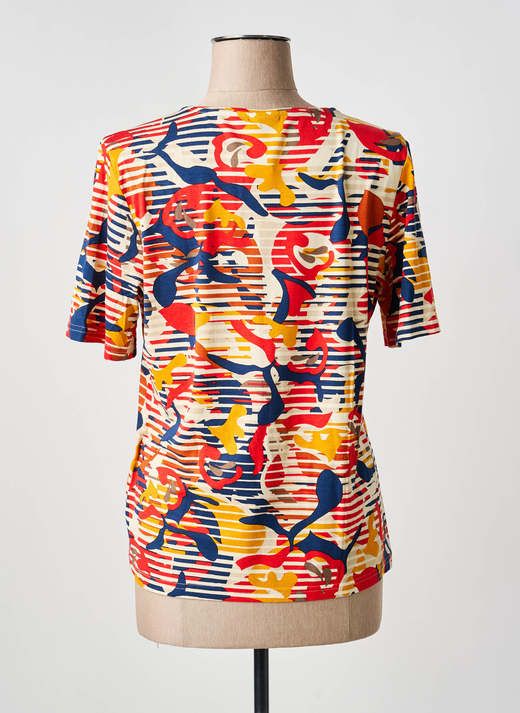 Craquez pour ce T-shirt BARBARA LEBEK pour femme à prix doux, idéal pour donner un coup de pep’s à votre garde-robe sans vous ruiner. Son imprimé coloré aux motifs abstraits mélange habilement les tons rouges, jaunes, bleus et blancs, pour une touche dynamique et originale. Sa coupe confortable et ses manches courtes font de ce haut un allié parfait pour les journées décontractées ou pour dynamiser un look plus classique, le tout en réalisant de vraies économies.