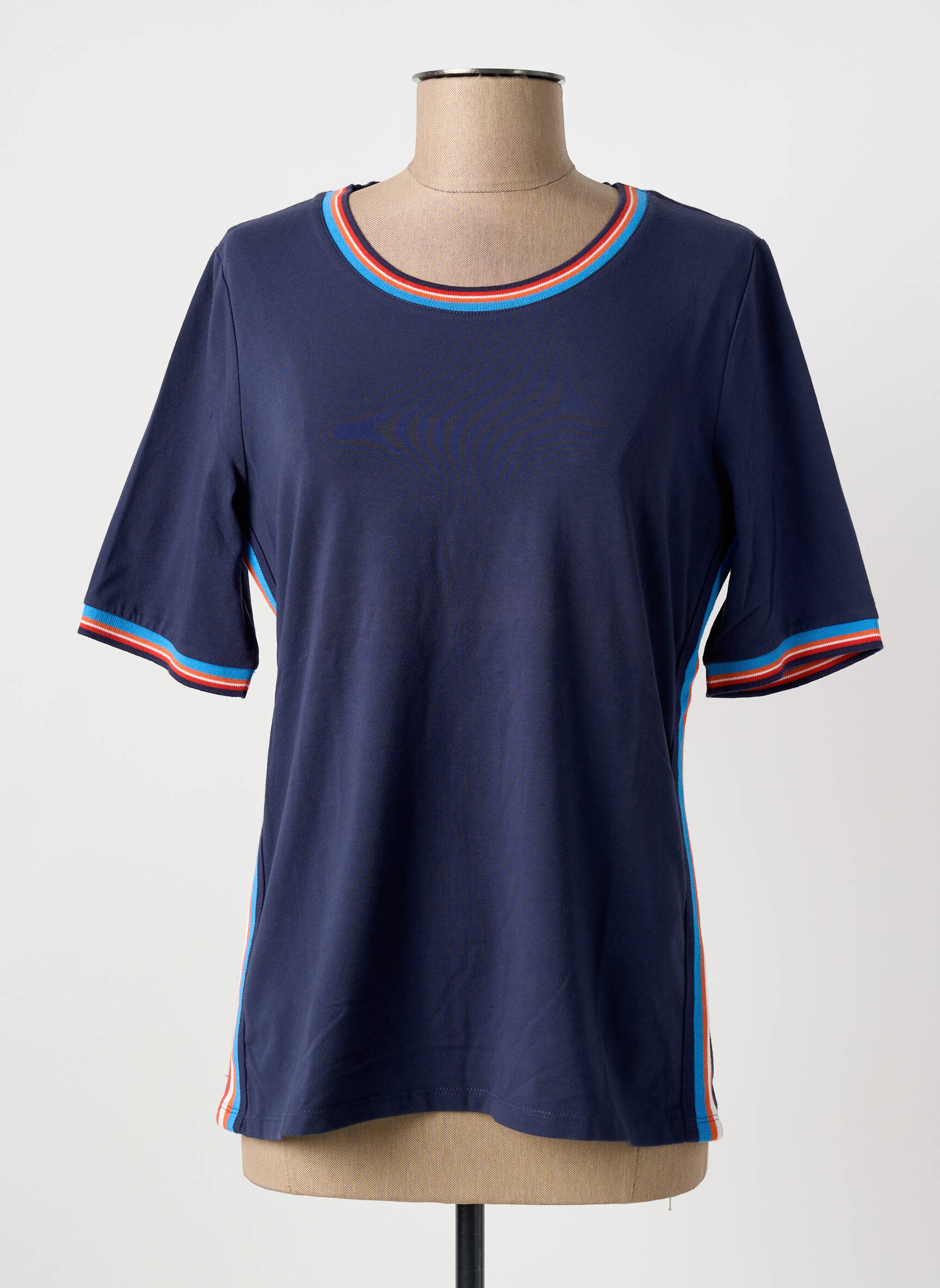 Saisissez l’occasion de vous faire plaisir à petit prix avec ce T-shirt BETTY BARCLAY pour femme, dont le design élégant et décontracté vous accompagnera au quotidien. Sa coupe classique est rehaussée de bandes colorées au col, aux manches et sur les côtés, pour une touche sportive et moderne qui dynamise votre look. C’est le choix idéal pour une tenue confortable, tendance et abordable, parfait pour celles qui veulent faire rimer style et économies.
