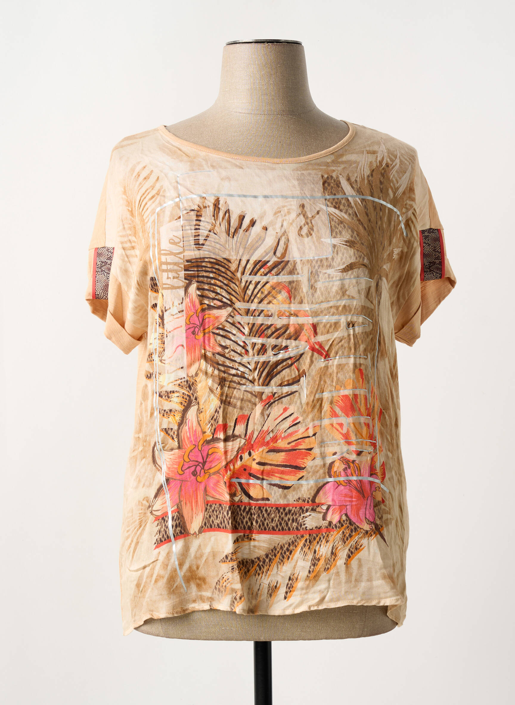 Idéal pour créer un look relax mais plein de style, ce T-shirt se glisse facilement dans un jean clair ou un short en toile pour un esprit vacances, et peut aussi être superposé à un cardigan léger pour affronter les matinées plus fraîches. Pour une allure urbaine, il se marie parfaitement avec un pantalon fluide ou une jupe midi et une paire de baskets blanches. Accessoirisez avec un sac cabas ou un petit sac bandoulière coloré ainsi que quelques bijoux dorés pour sublimer la touche exotique du motif.