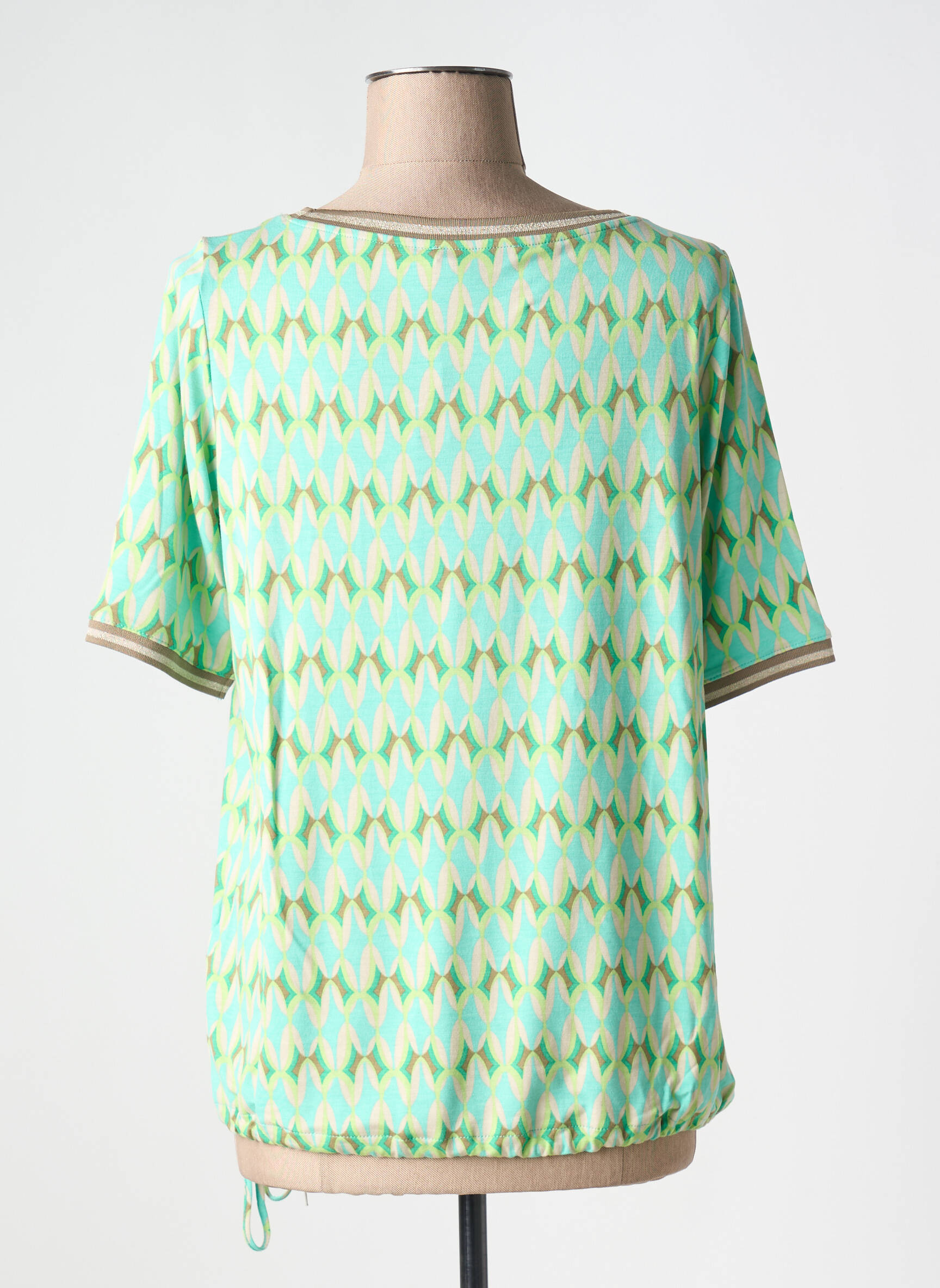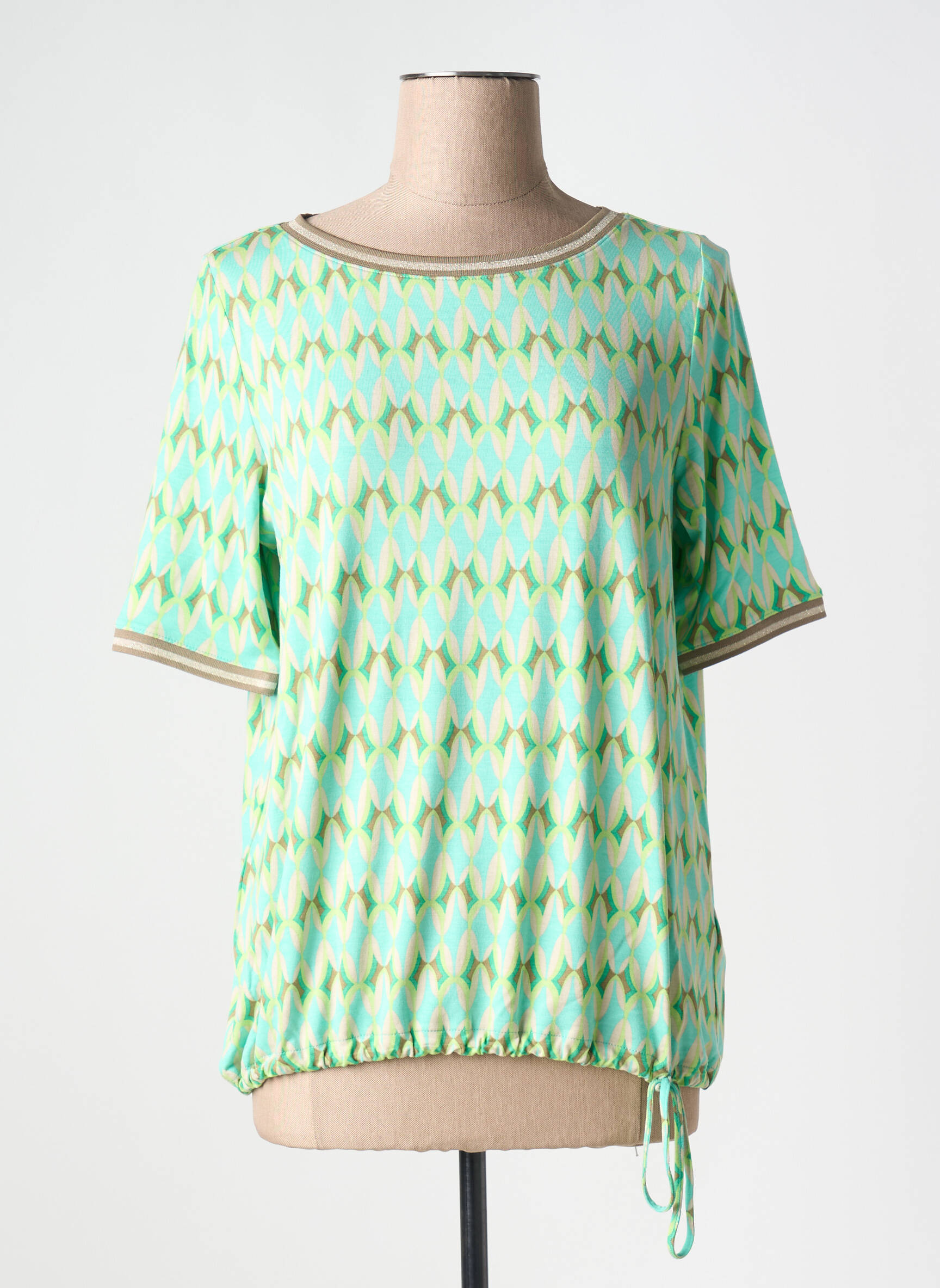 Saisissez une belle opportunité mode à prix tout doux avec ce T-shirt Betty Barclay pour femme, qui séduit par son imprimé graphique aux tonalités vert d’eau et jaune, parfait pour apporter de la fraîcheur à votre dressing sans vous ruiner. Son encolure ronde et ses manches courtes légèrement contrastées ajoutent une touche de modernité, tandis que la base ajustable par un lien vous permet une silhouette personnalisée et confortable, idéale pour accompagner aussi bien un jean qu’une jupe en journée. C’est le choix malin pour allier style tendance et économies.