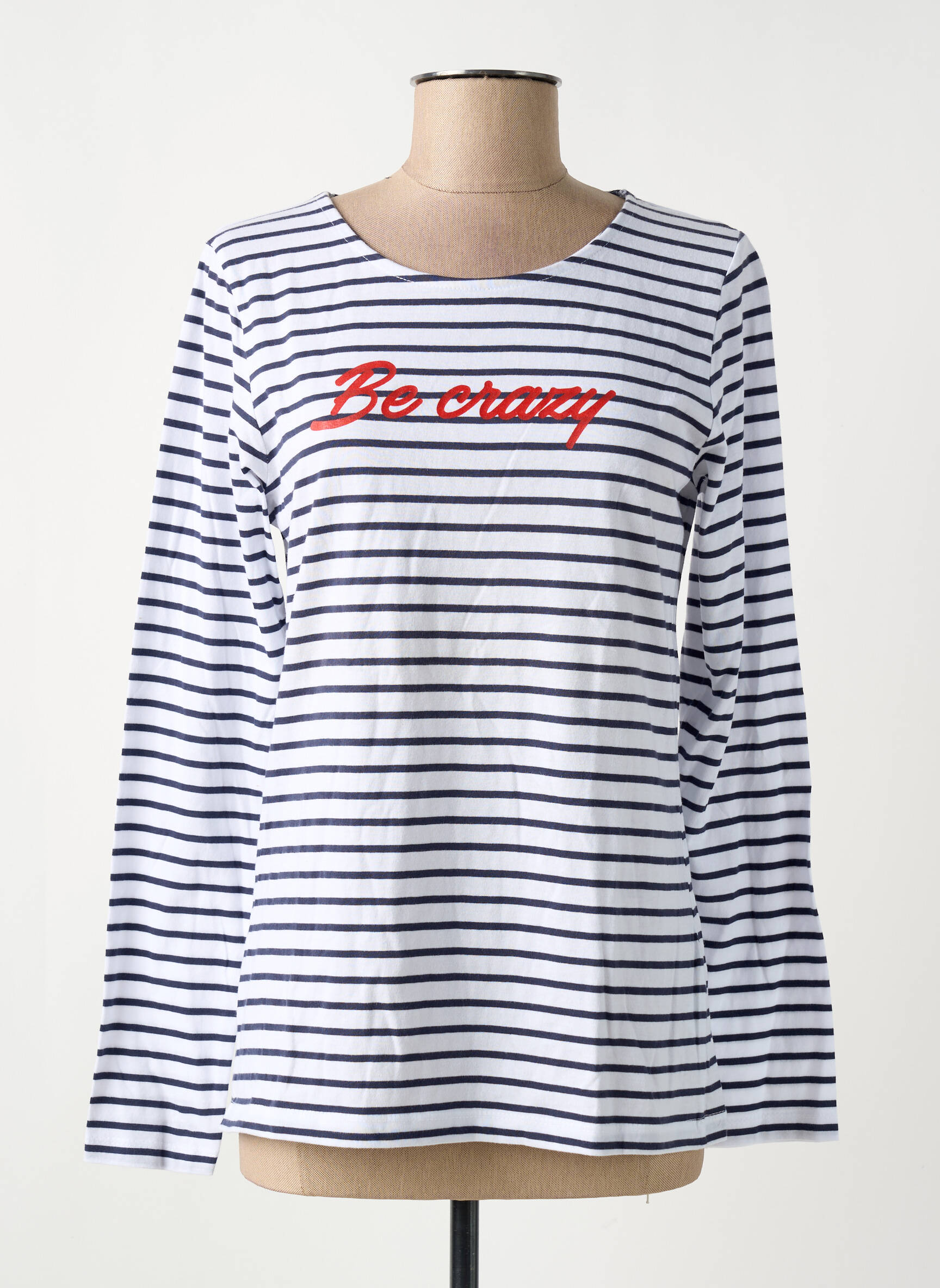 Saisissez l'occasion d'adopter un look tendance sans vous ruiner avec ce T-shirt femme BREIZH ANGEL au style marin, orné de fines rayures bleues et blanches, et rehaussé par l'inscription audacieuse "Be crazy" en rouge. Ce basique revisité, parfait pour apporter une touche d’originalité à votre dressing, se distingue par son côté à la fois intemporel et actuel, pour un prix tout doux qui vous permettra de faire des économies tout en restant stylée.